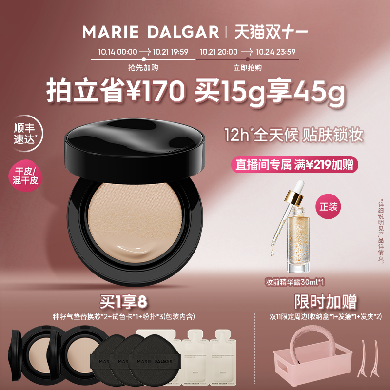 商品名称:【双11立即抢购】玛丽黛佳种籽气垫贴肤持妆混干皮粉底液细腻遮瑕