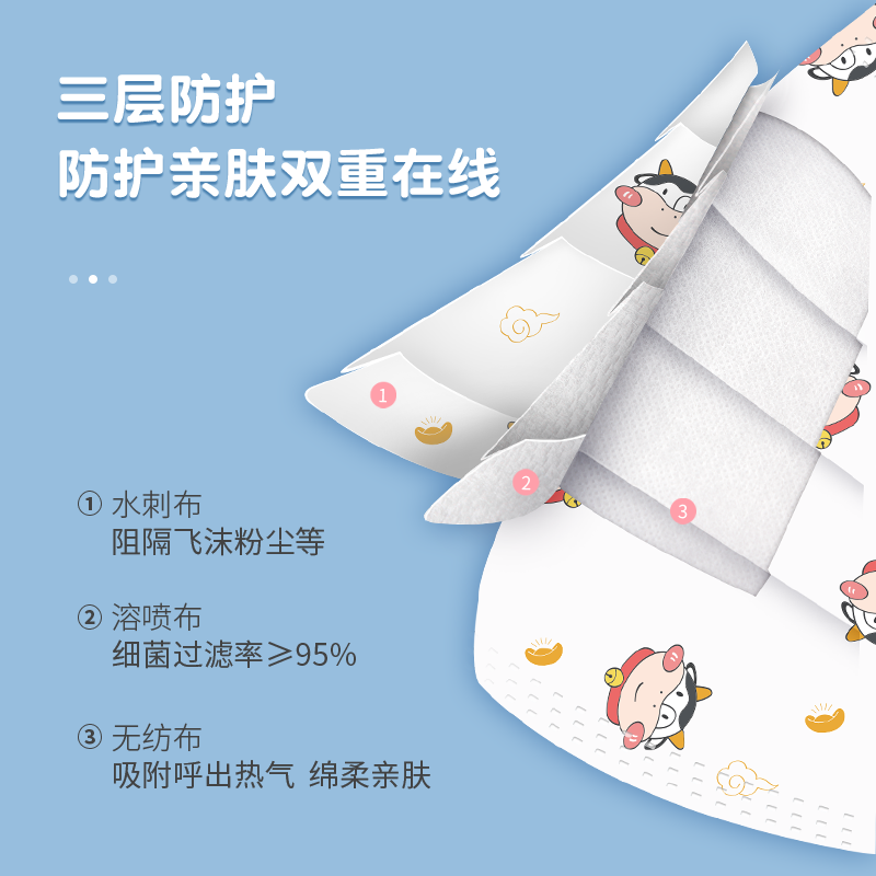 商品名称:袋鼠医生医用外科口罩夏季牛转乾坤印花儿童尺寸独立包装