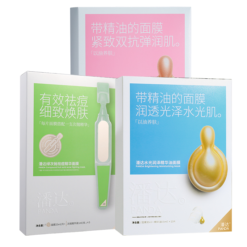 商品简介:热销爆款精油面膜CP(双抗精油粉面膜10片+熬夜修护补水面膜10片+祛痘修护面膜5片)新升级,潘达油敷面膜组合装,实力紧致祛痘,密集舒缓补水保湿,1片约等于1瓶精华,全肤质适用,速度囤!