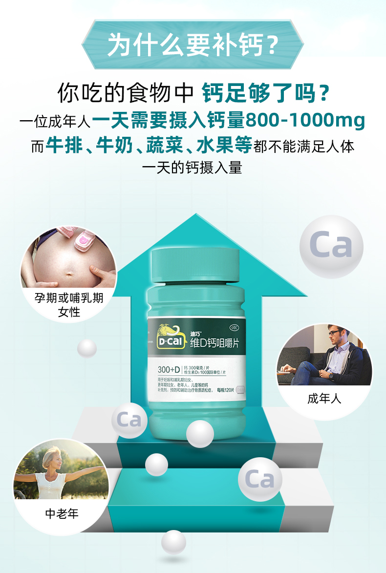 商品介绍:【迪巧】碳酸钙维生素d3钙片120片