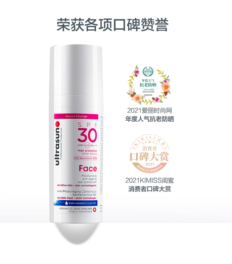 商品介绍:ultrasun优佳敏感肌防晒霜30ml