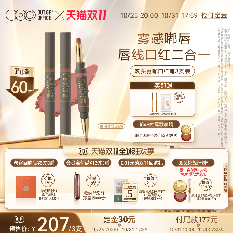 商品名称:【双11预售】OUT OF OFFICE雾嘟口红唇线笔丰唇OOO双头唇釉哑光