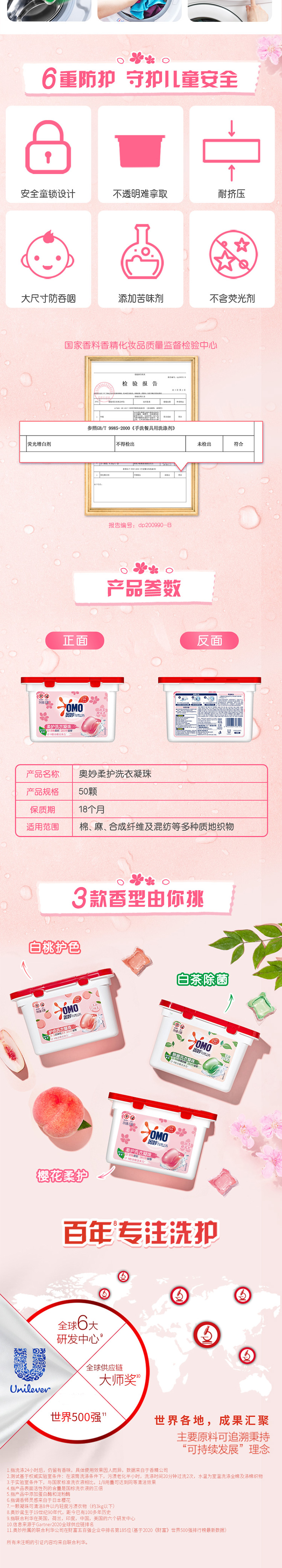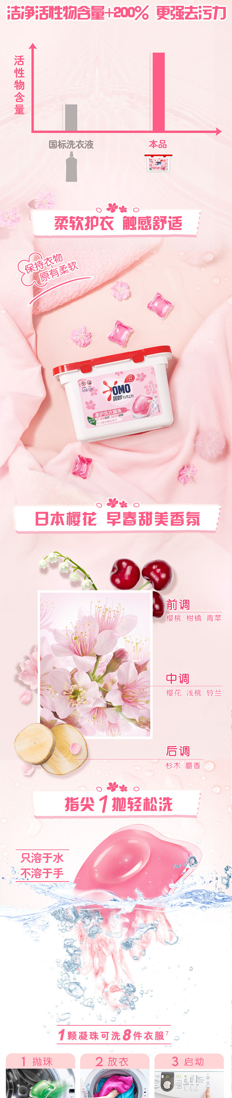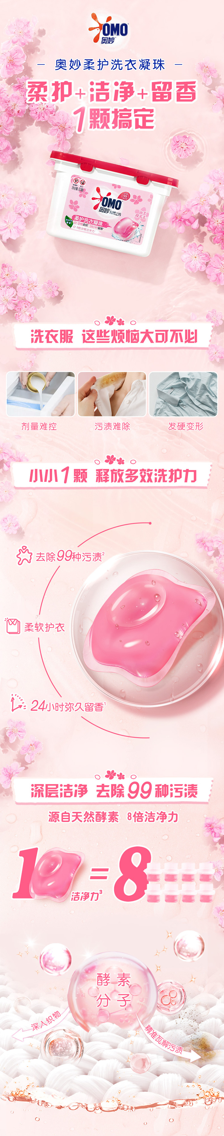 商品名称:奥妙自然工坊樱花甜香柔护洗衣凝珠400g(50颗)持久留香抑菌除螨