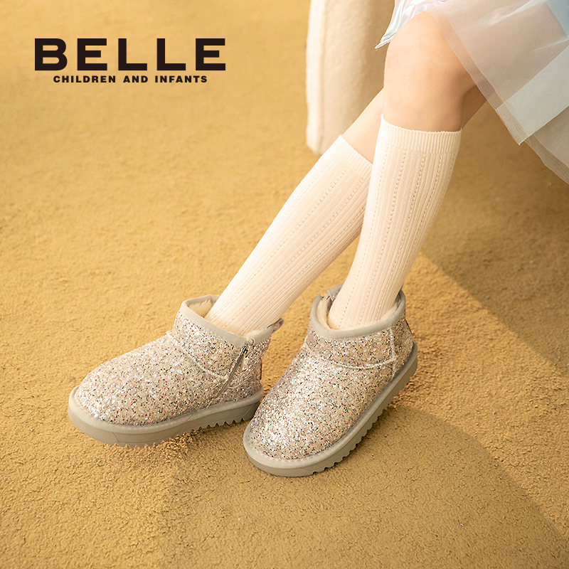 商品介绍:百丽儿童雪地靴加绒保暖女童短靴子棉鞋潮