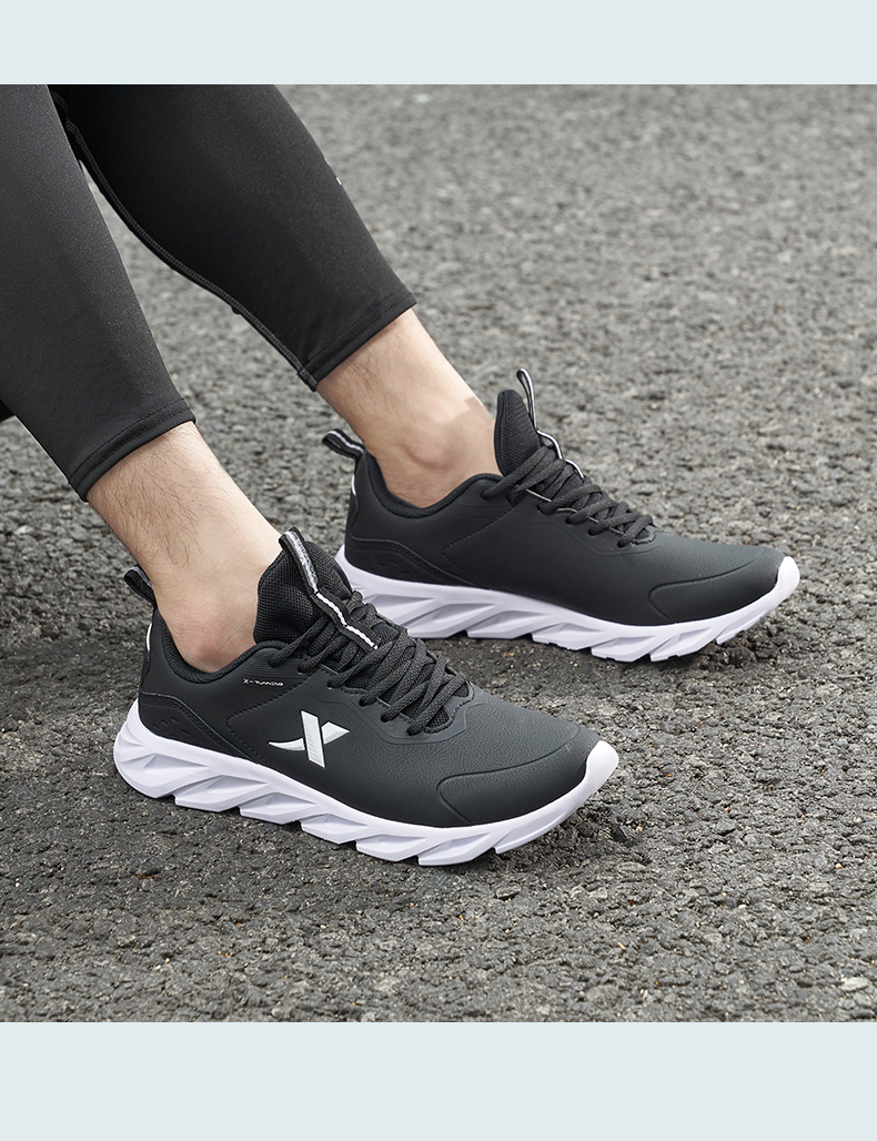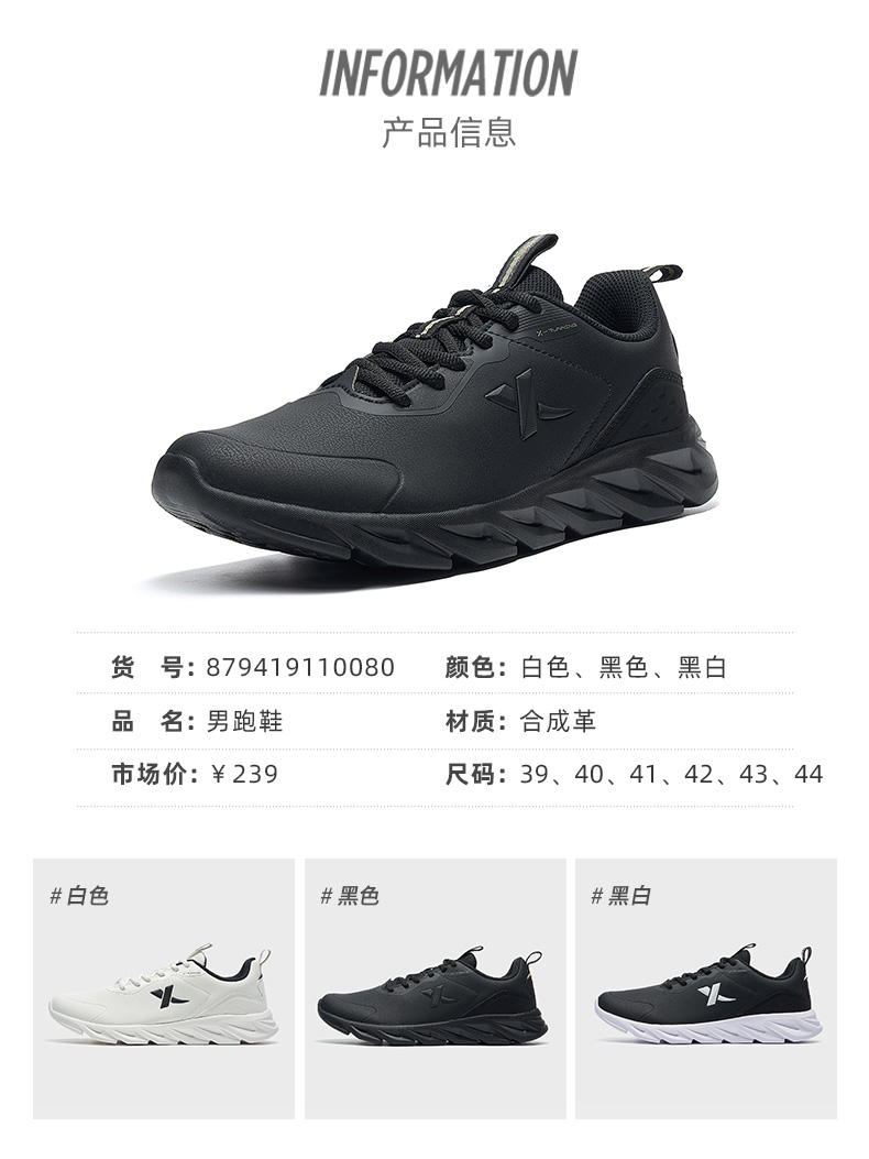 商品名称:特步男鞋运动鞋2024正品秋季新款减震跑步鞋子黑色皮面防泼水跑鞋