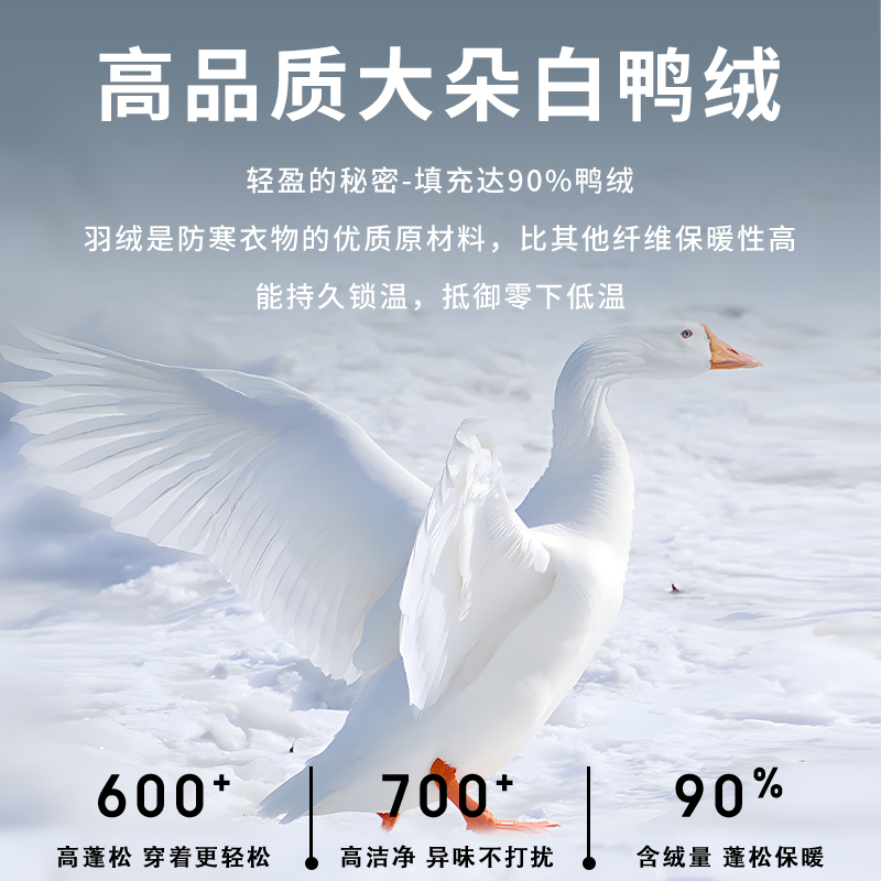 商品简介:轻盈蓬松,拉长身材比例,连帽设计防风保暖~