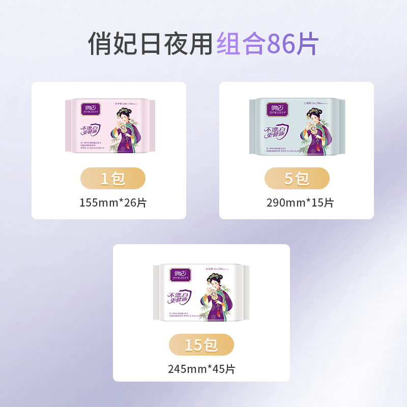 商品介绍:俏妃竹纤维抑菌卫生巾姨妈巾日夜组合84片