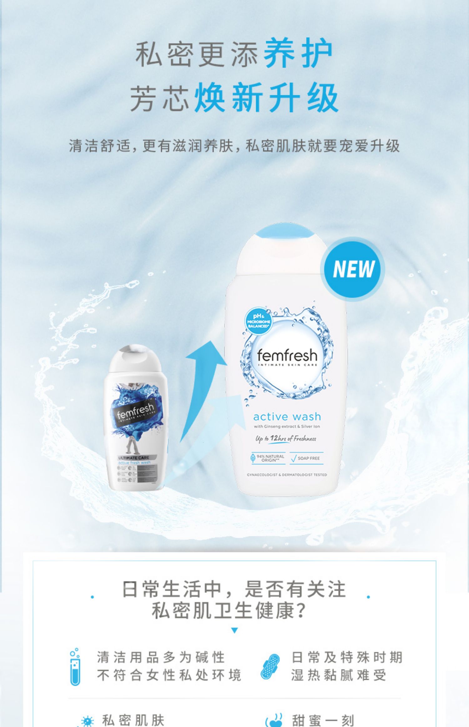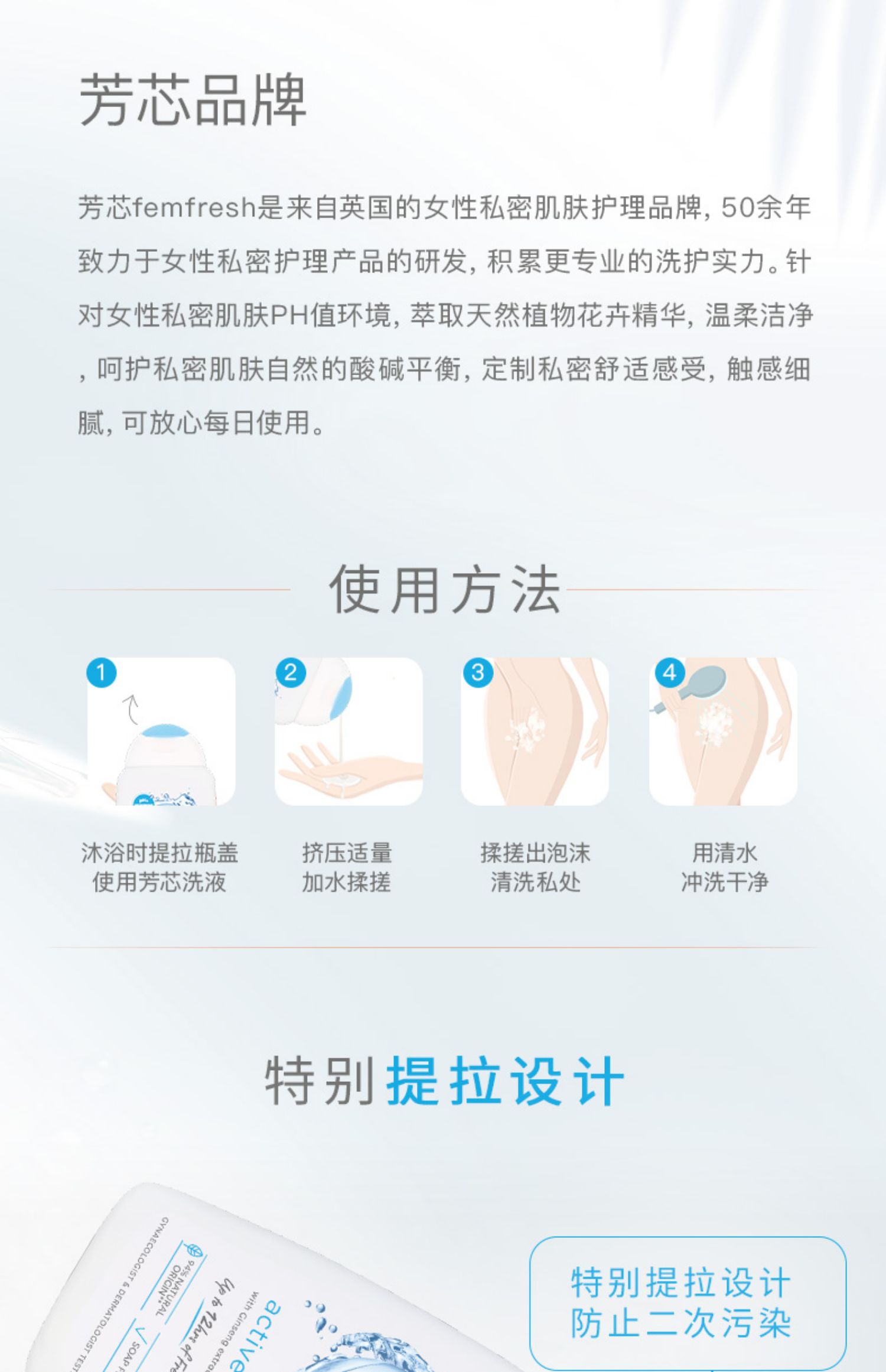 商品名称:英国芳芯femfresh私处护理液清洁改善异味私密洗护液男女均可用