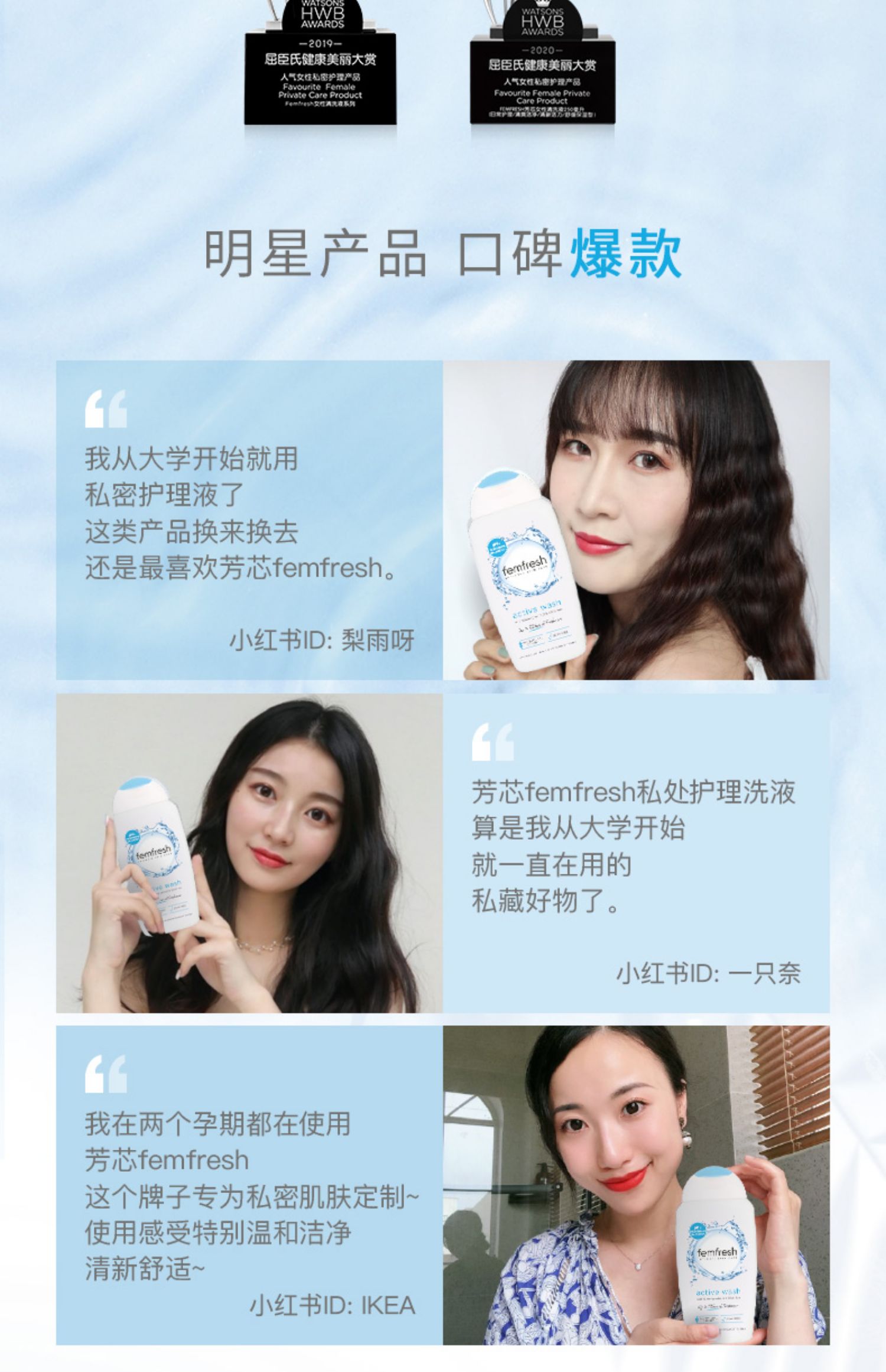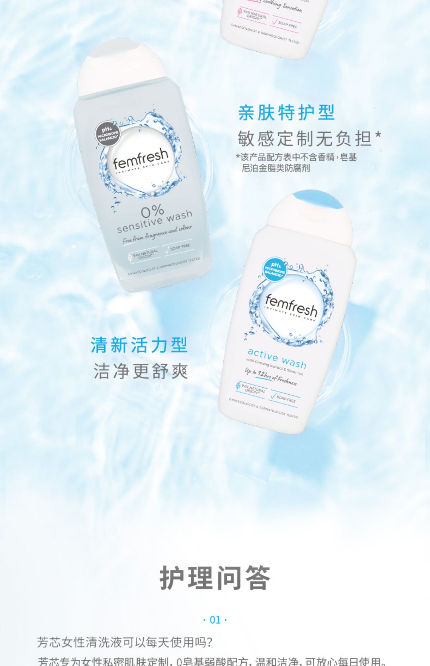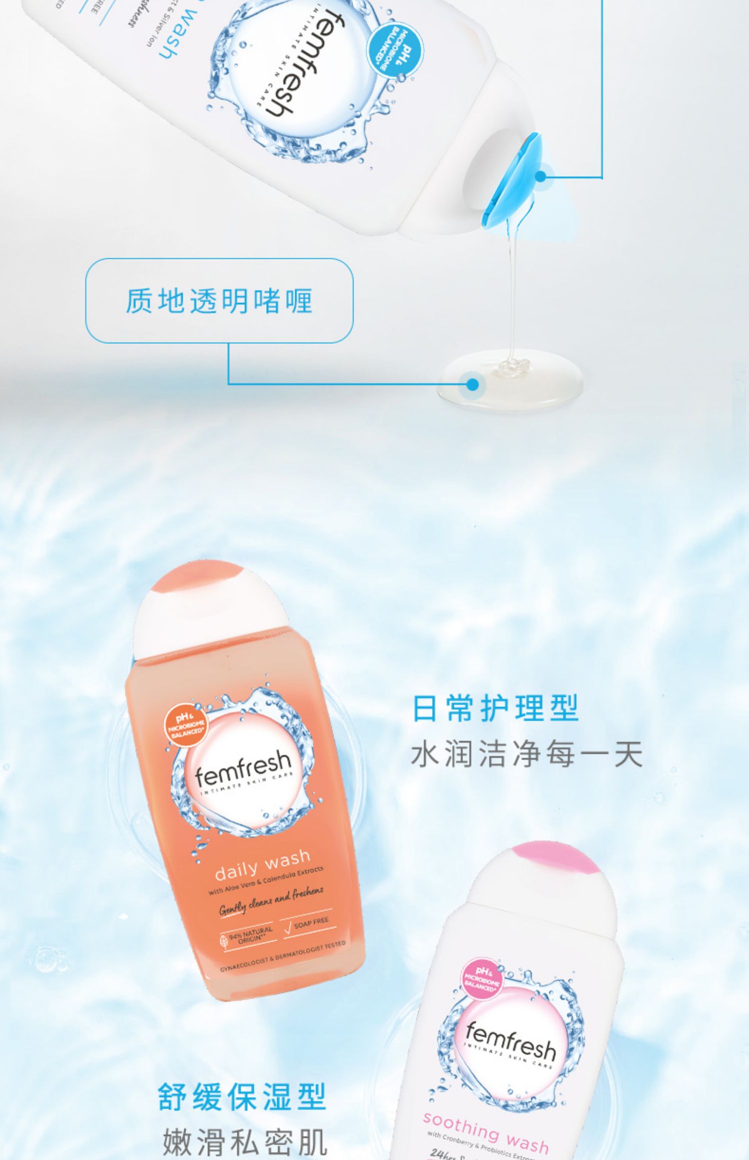 商品介绍:英国芳芯femfresh女性私处护理液3瓶