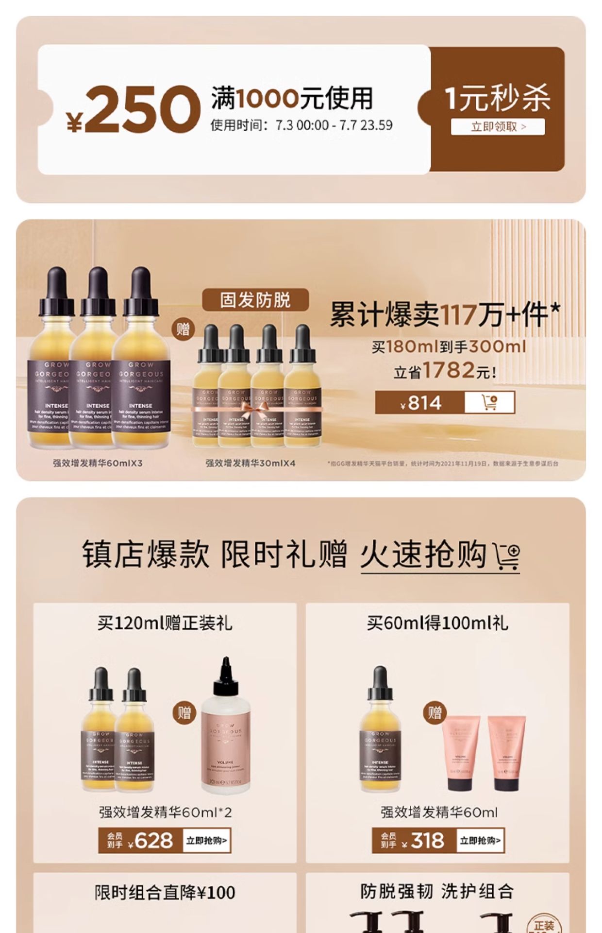 商品名称:【60ml*2囤货装】GrowGorgeous强效增发精华头发护理营养液