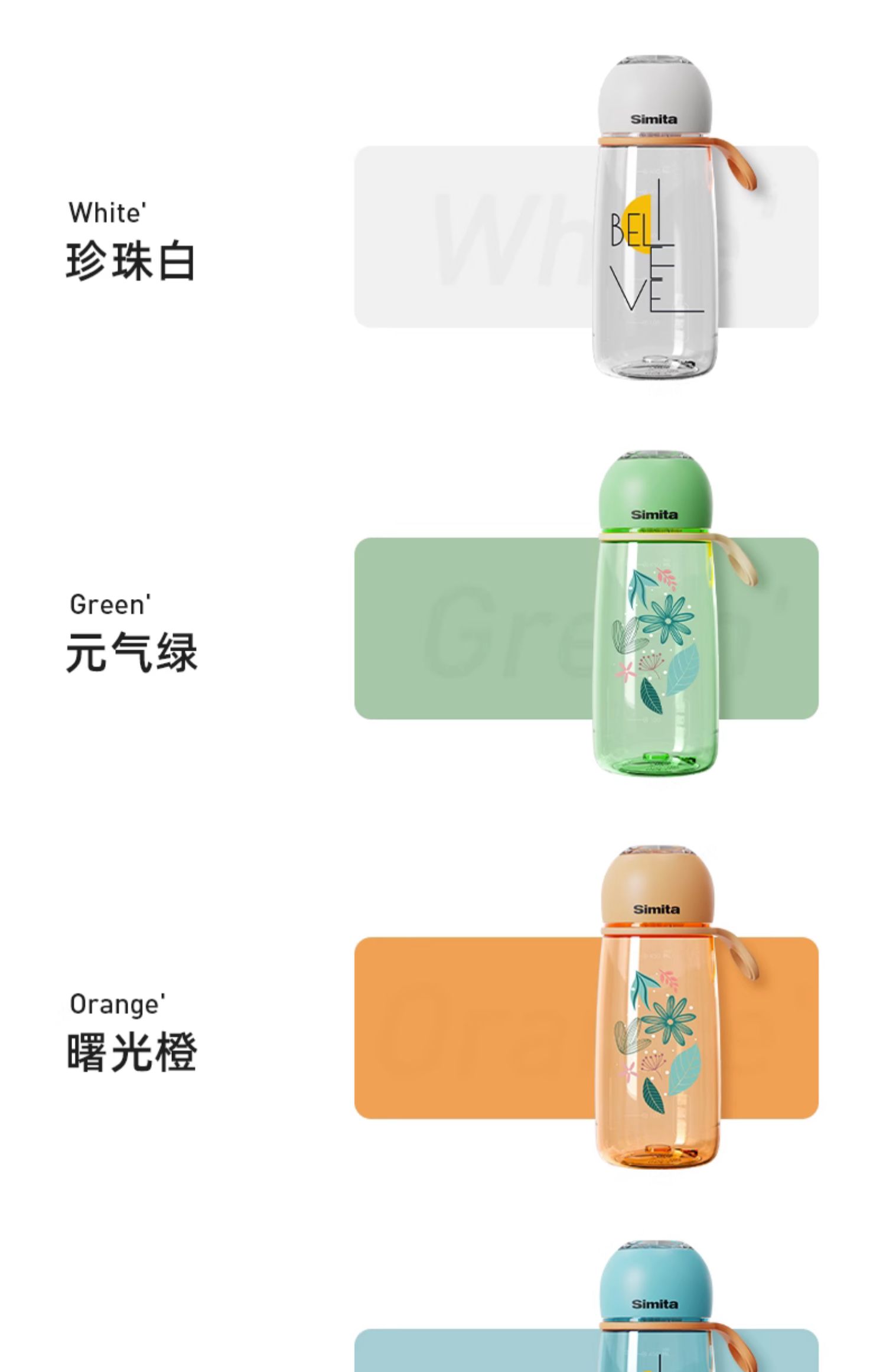商品简介:Simita水杯男女生高颜值塑料杯,超赞!