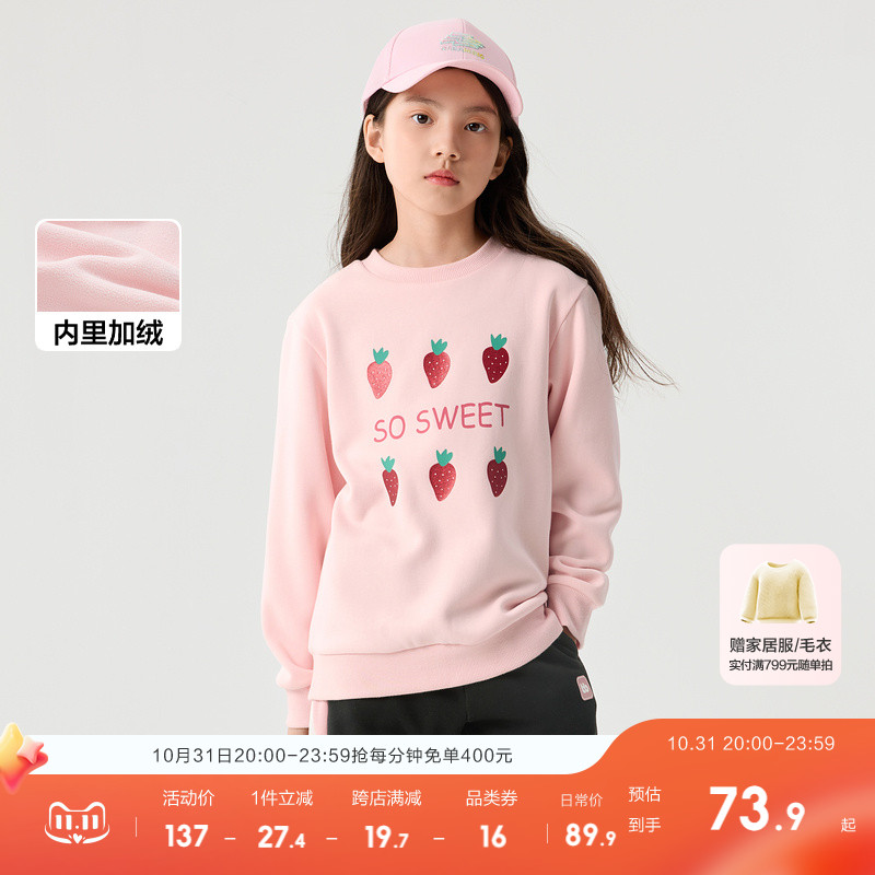 商品介绍:3件271.6!巴拉巴拉中大童加绒加厚卫衣