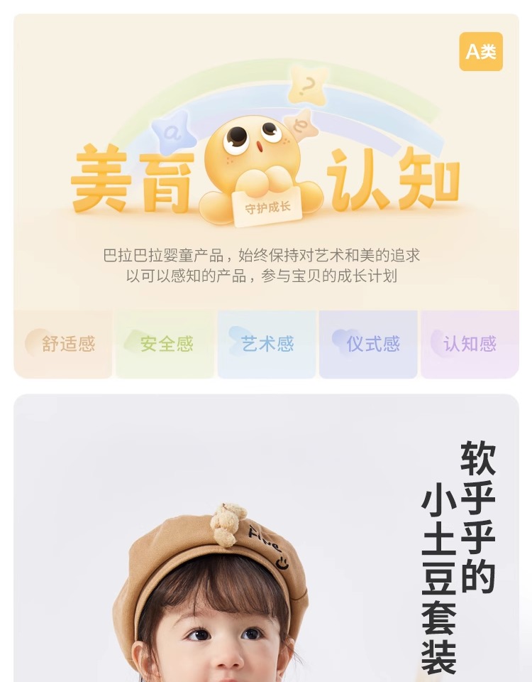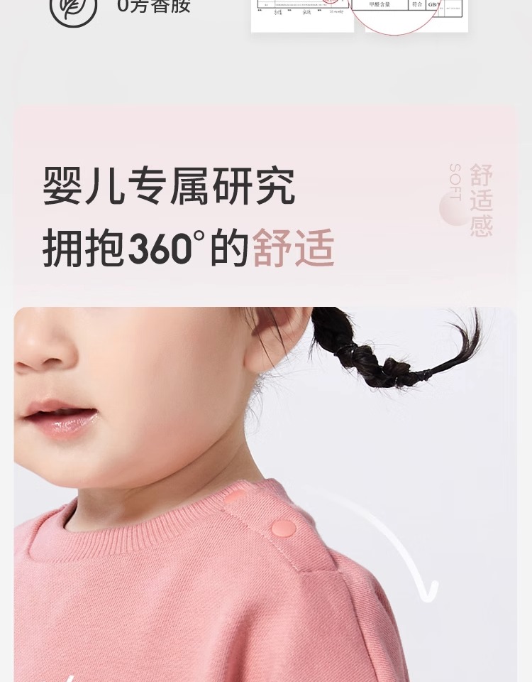 商品简介:婴儿专属研究拥抱360°的舒适;奶呼呼色系启发视觉美感。可爱卡通印花,唤醒手指触感