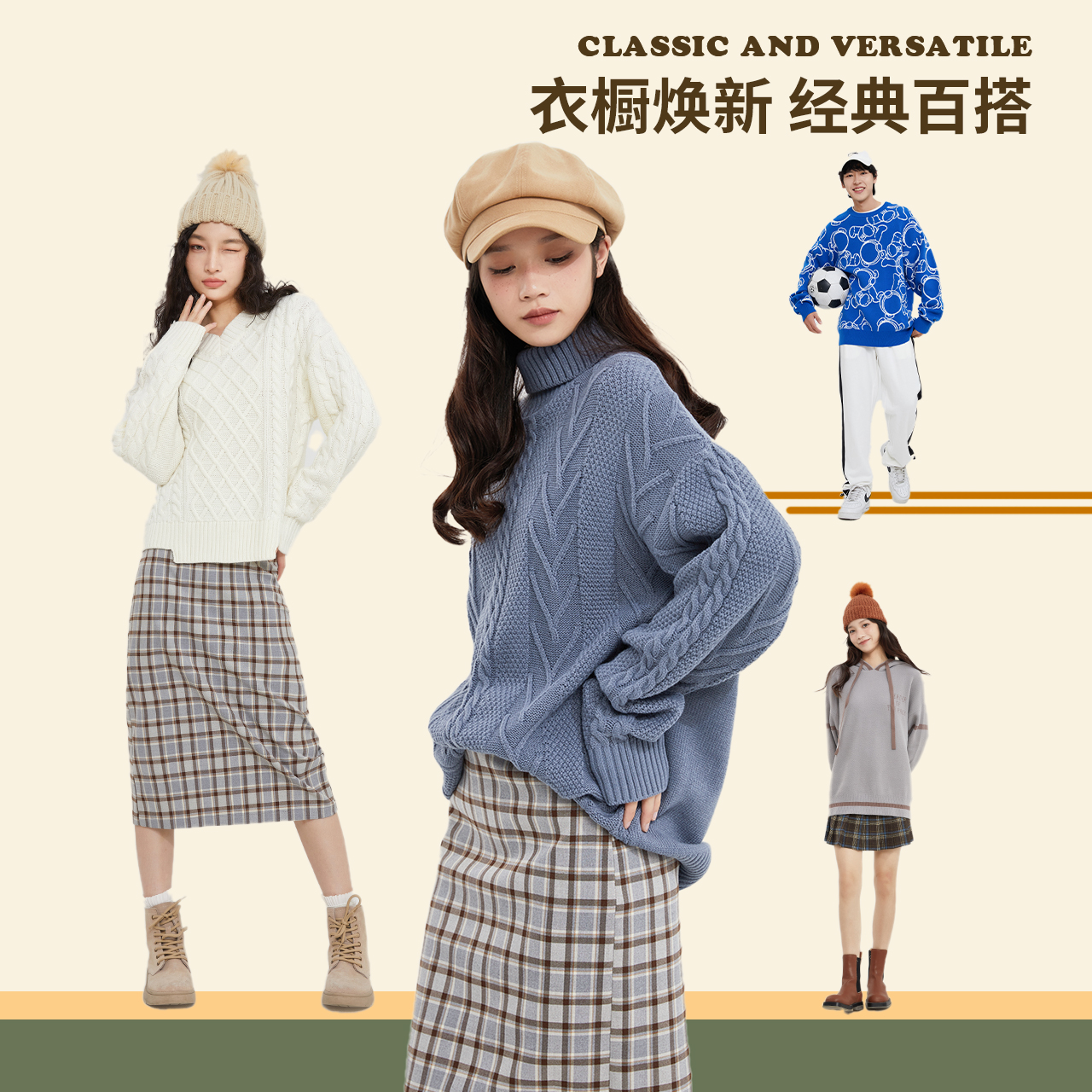 商品名称:美特斯邦威毛衣男女秋冬季圆领绞花简约运动套头毛衫马甲休闲裤