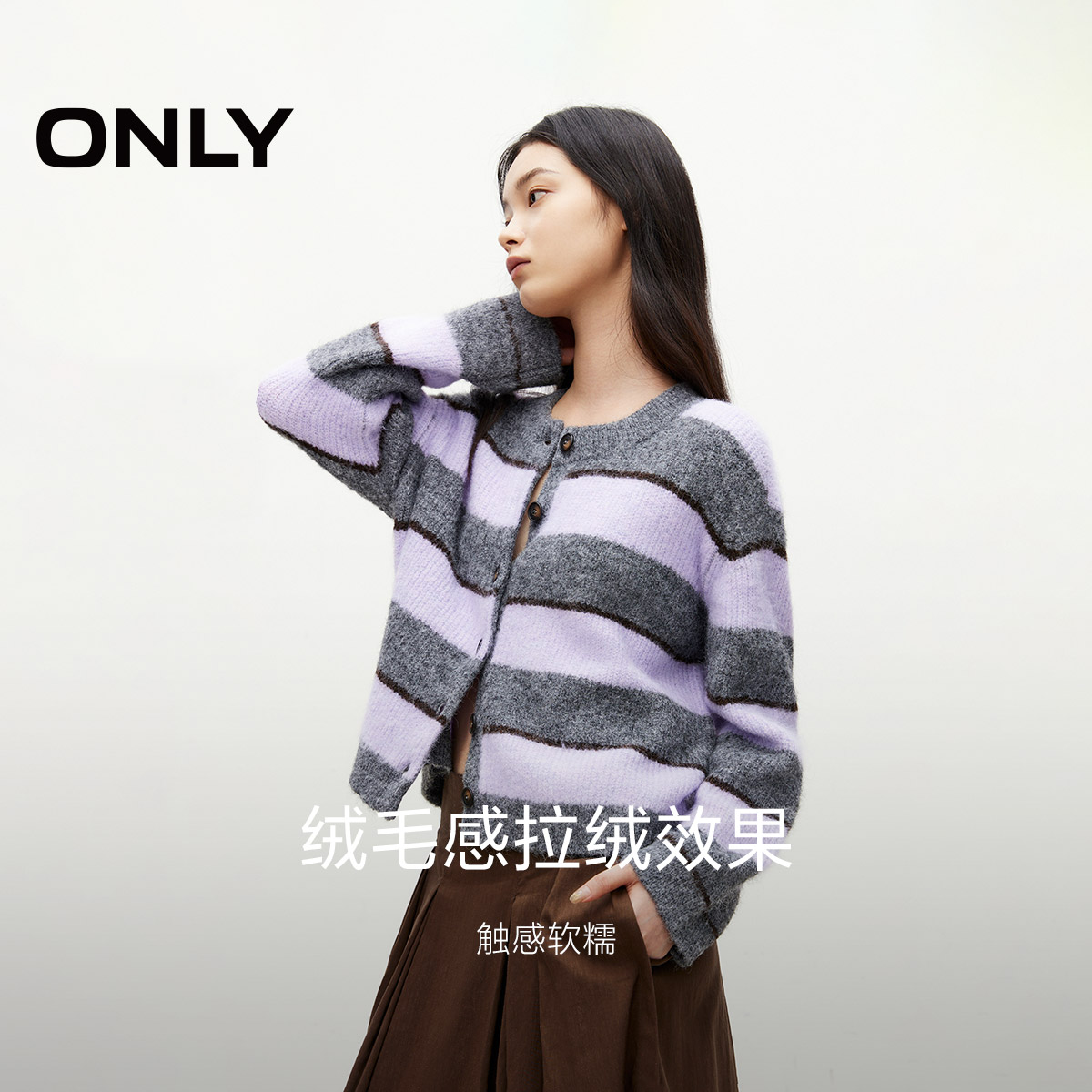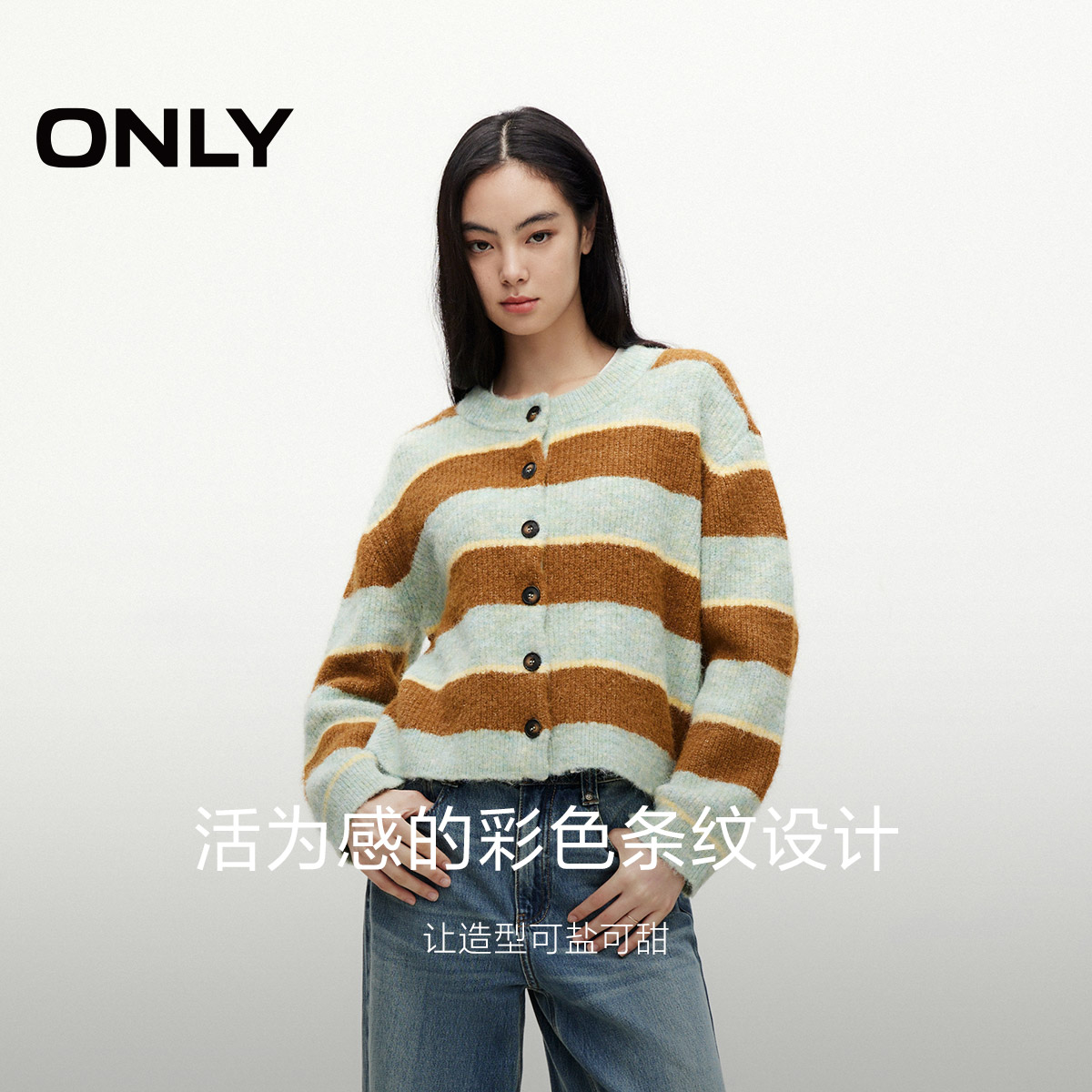 商品名称:【预售免定金】ONLY2024秋季新款条纹含羊毛针织衫女|12433B016