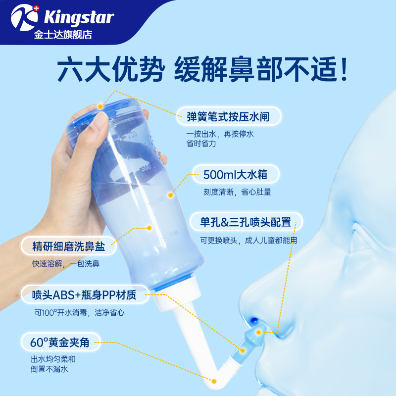 商品介绍:【金士达】洗鼻器500ml+洗鼻盐30袋