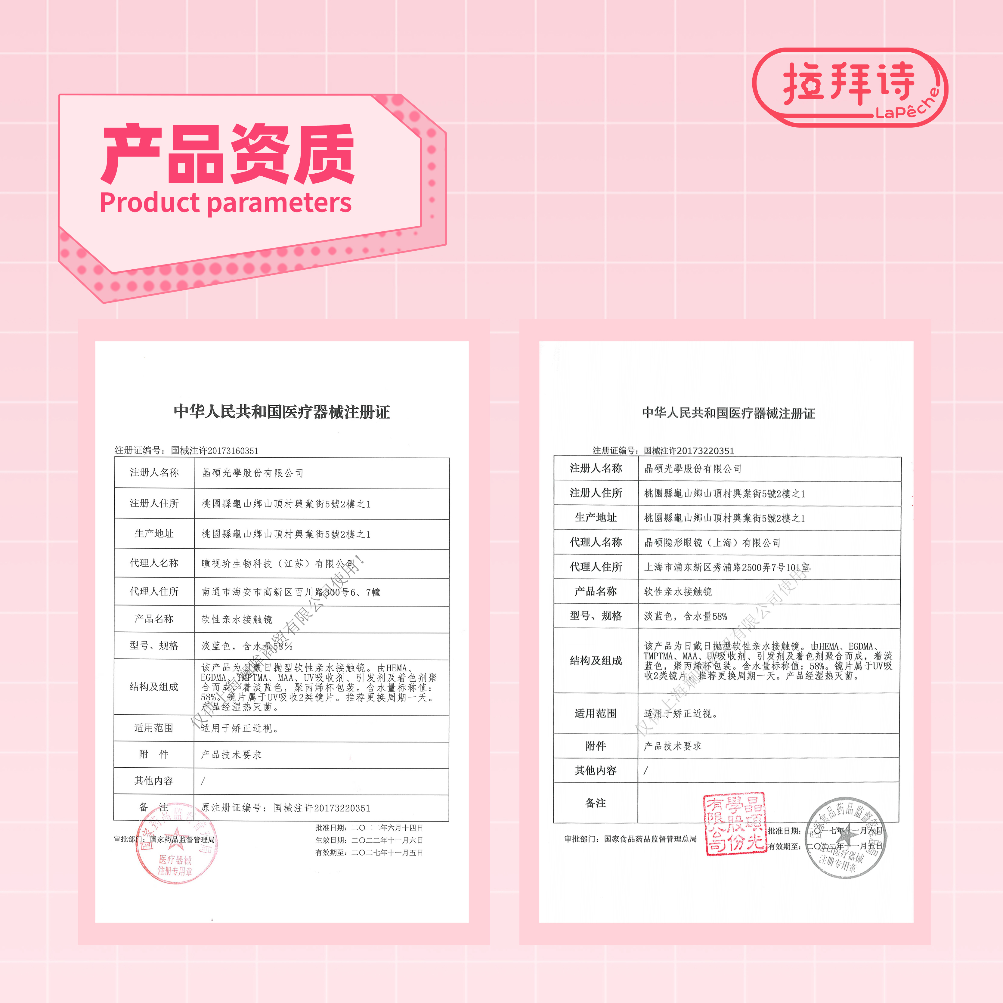 商品名称:【限时直降】拉拜诗小粉片透明隐形近视眼镜日抛20片舒适水润视客