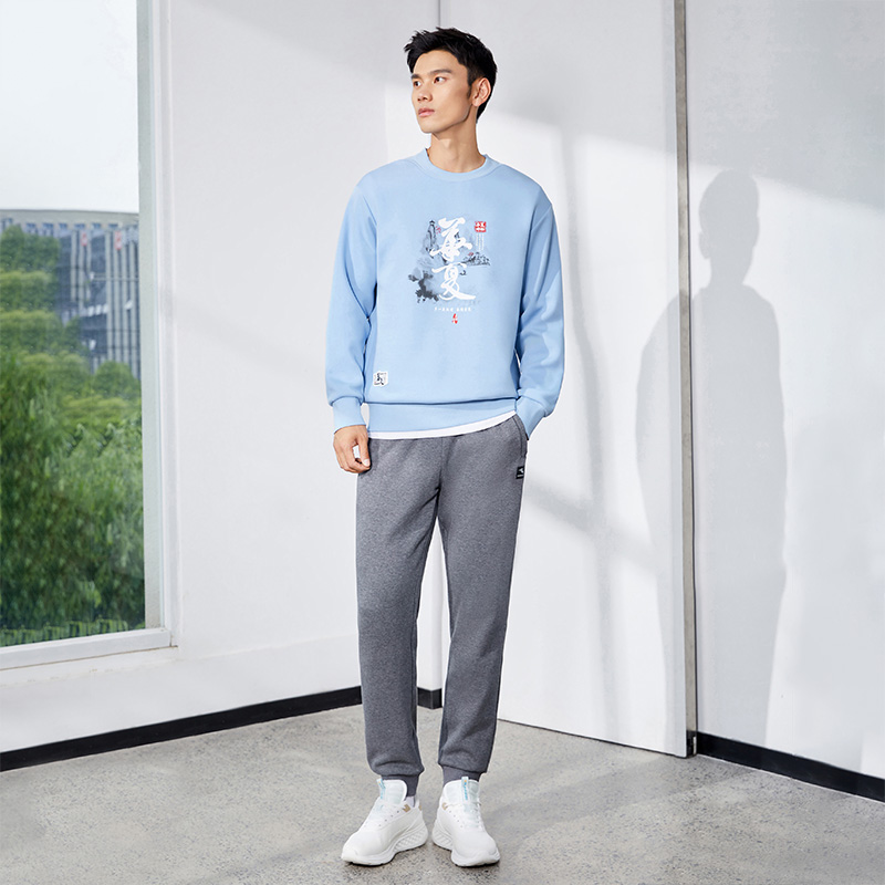 商品名称:361运动卫衣男2024秋季新款蓝色印花套头卫衣男士宽松休闲运动服