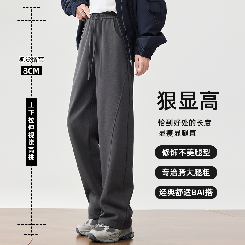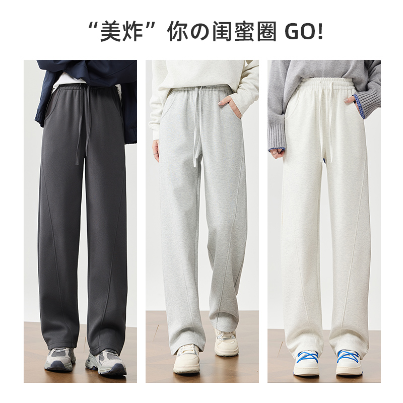 商品名称:马克华菲香蕉阔腿裤女2024秋冬新款休闲美式宽松加绒卫裤运动裤女