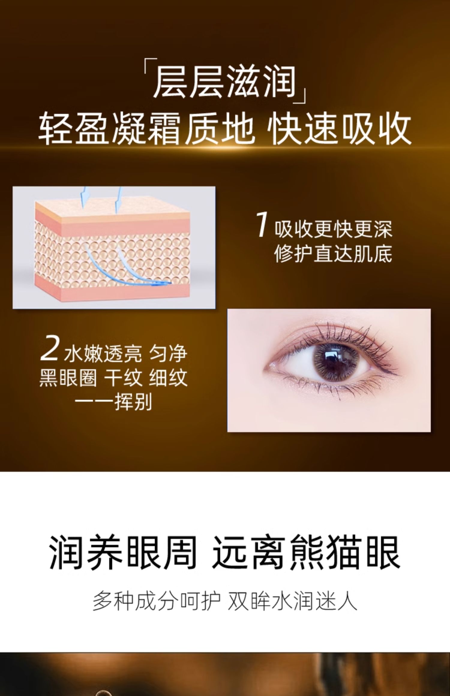 商品简介:【拍3件】29.9元,到手3瓶,多维改善眼周状态,莹润嫩泽,清爽不油腻,轻抹吸收~丝绒幼滑质地,轻盈奢润,细腻柔滑,触肤即融,吸收快!
