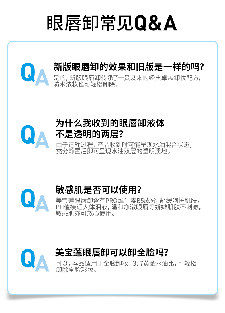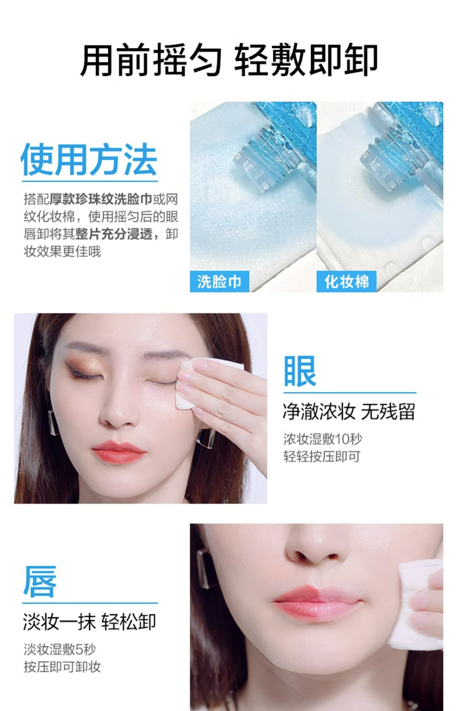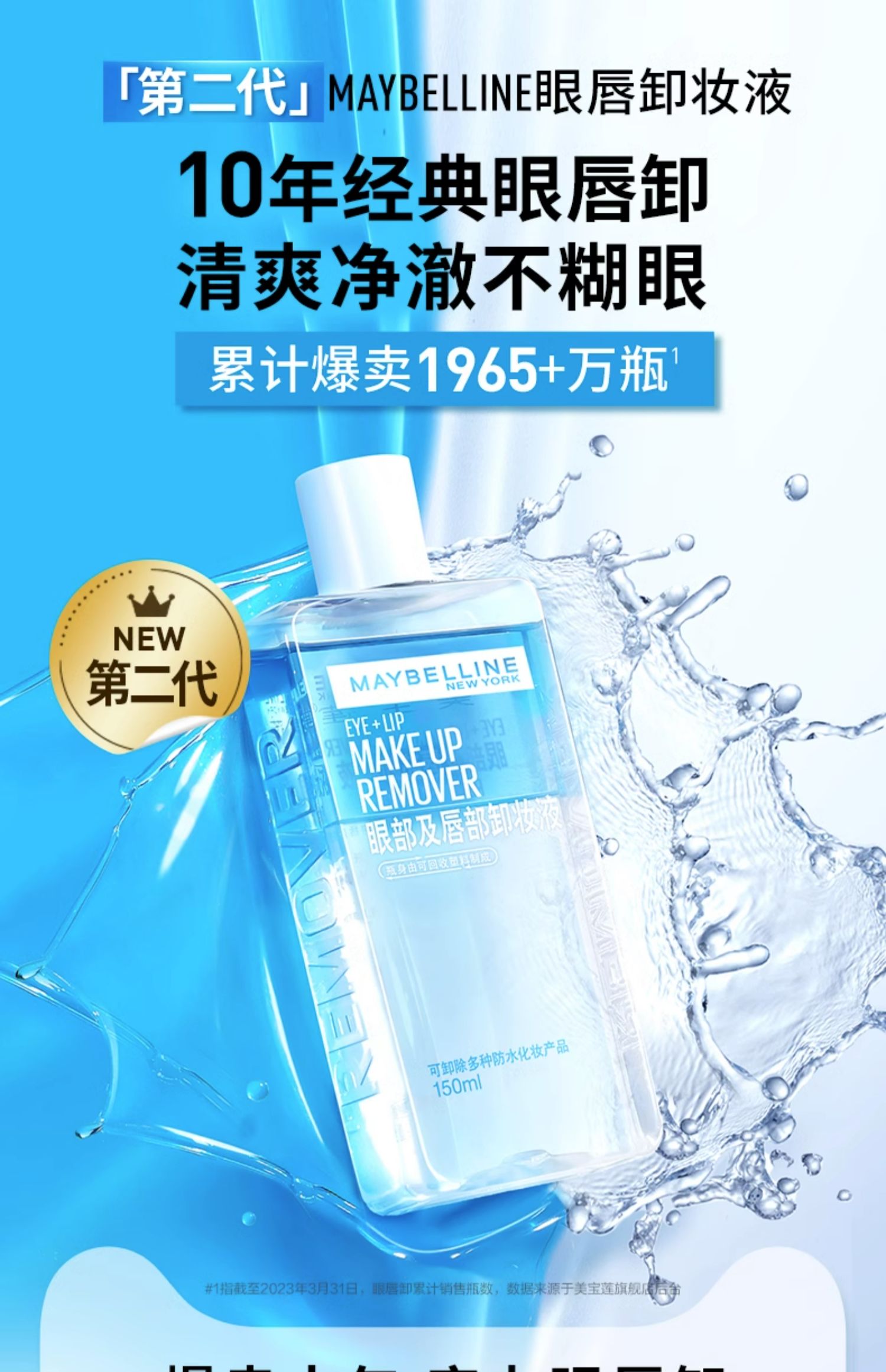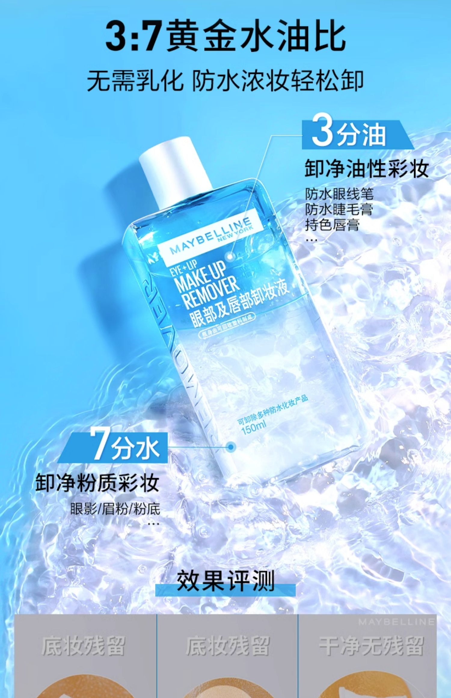 商品简介:下单即赠正装vc全脸卸150ml!跨店立减50!叠品类券200-20,到手只要80元!眼唇卸150ml*4+净澈卸400ml+vc全脸卸150ml共计1150ml!美宝莲眼唇卸妆液,水油分离,温和不刺激,敏感肌也可用,脸部卸妆+眼唇卸+面部清洁,一瓶搞定!