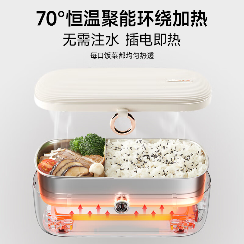 商品简介:88vip79.52,小熊品牌3C认证,304不锈钢内胆,可拆分隔板,免注水恒温热饭,双盖密封保鲜,分体易洗
