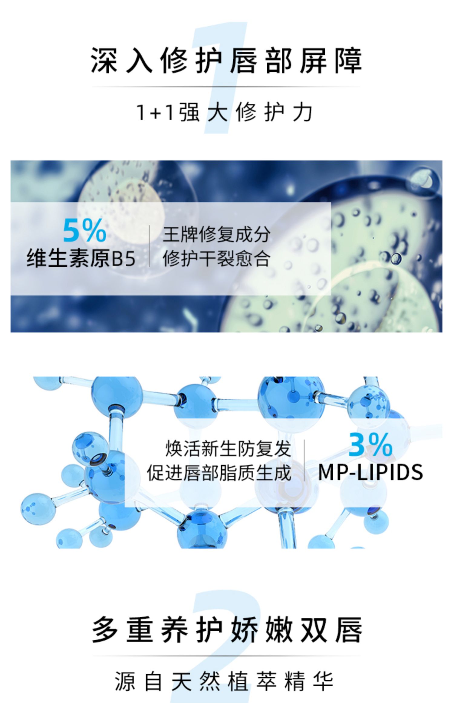 商品简介:一支真正修护型唇膏,多重成分,强大修护力去死皮修干裂防反复