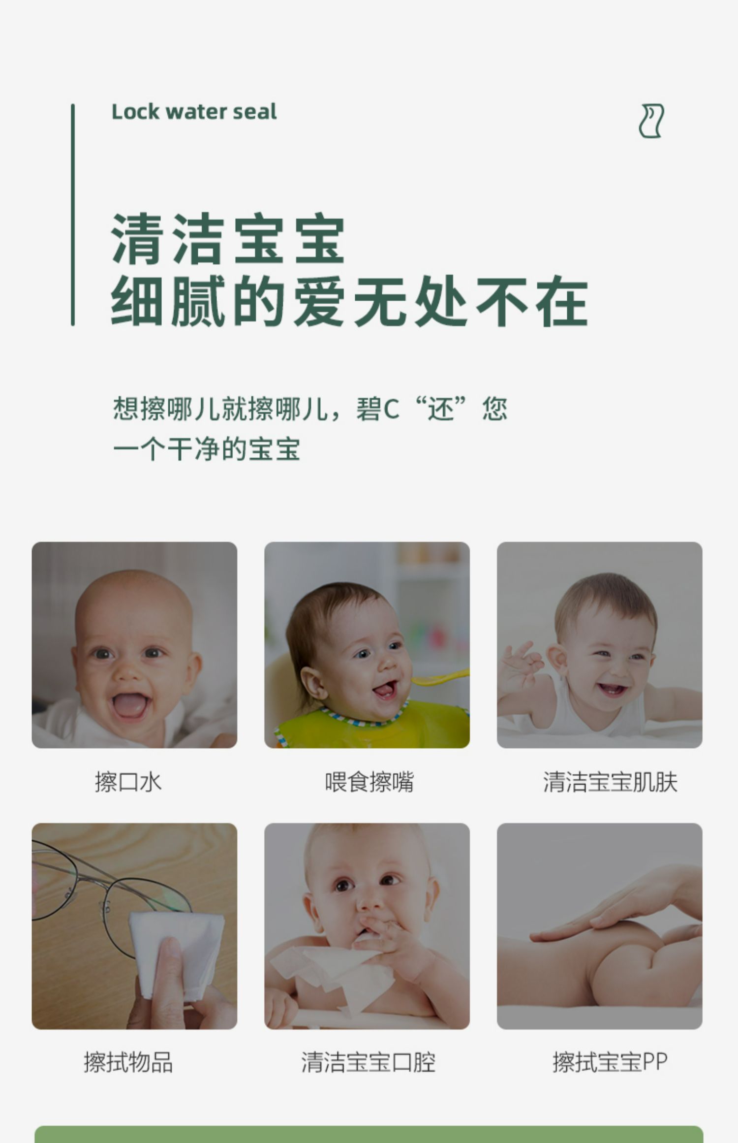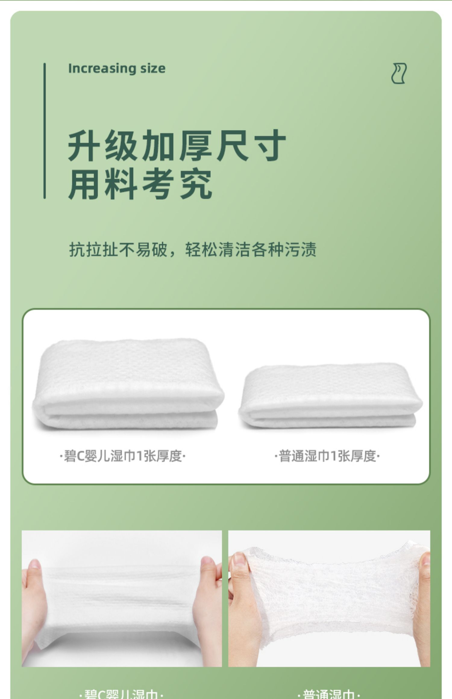 商品简介:珍珠凸点柔厚质感,肌肤清爽洁净,亲肤柔棉,无荧光无香精,温和水润,抑菌洁净,安全到可以“吃”的湿巾~