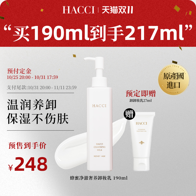 商品简介:【同价双11】HACCI蜂蜜养肤卸妆乳190ml*2,养卸合一面部温和洁面清洁