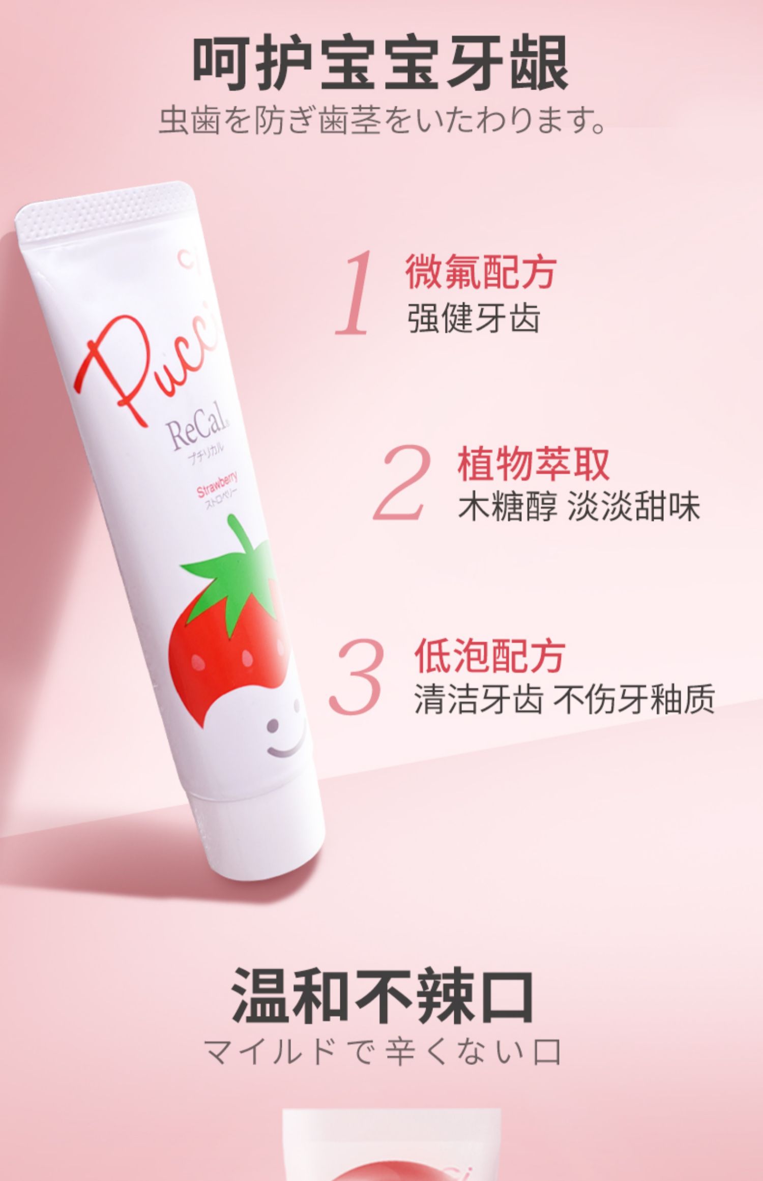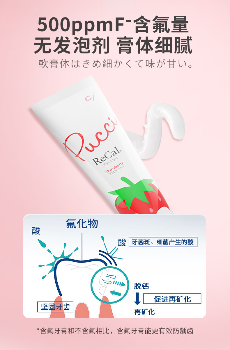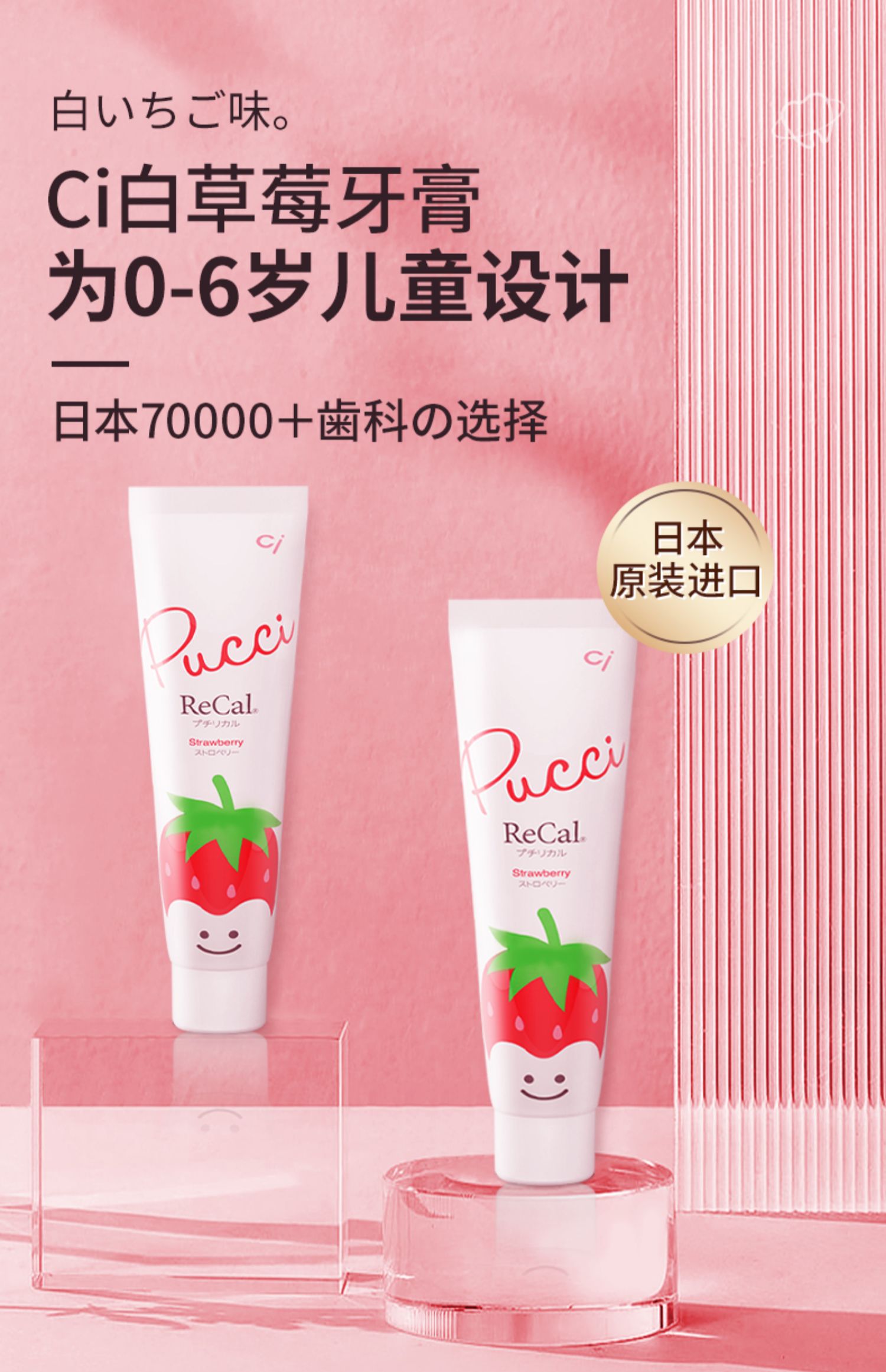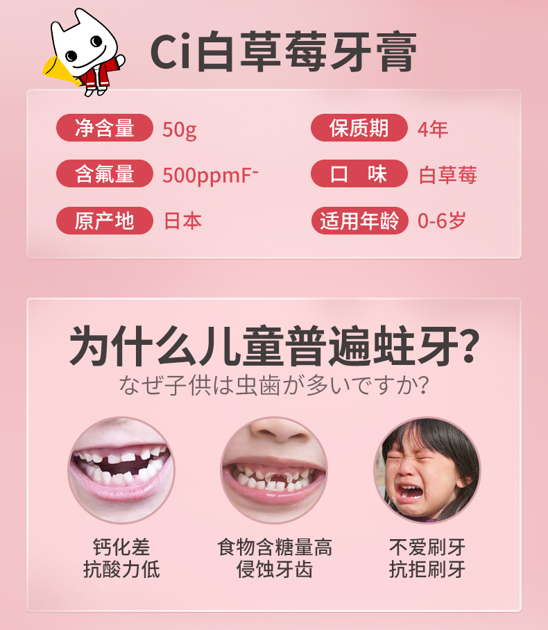 商品名称:日本进口ci儿童牙膏水果味白草莓1-5岁婴幼儿防蛀含低氟牙膏