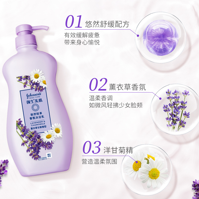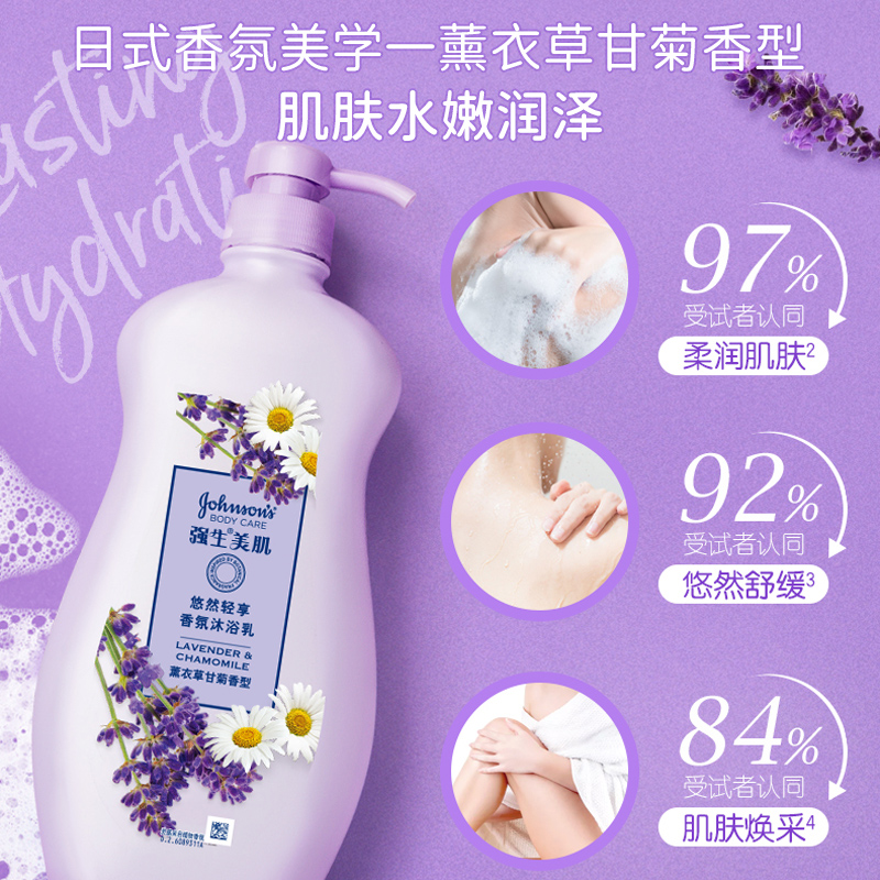 商品简介:强生沐浴露持久留香家庭装,成人美肌滋润沐浴乳保湿助眠薰衣草