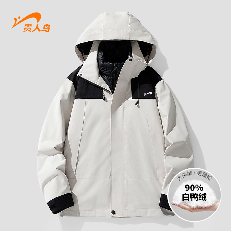 商品名称:贵人鸟羽绒三合一拼接冲锋夹克秋冬季男女爆款御寒保暖情侣外套