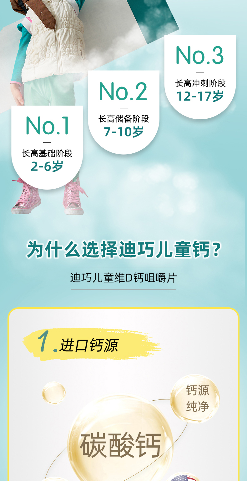 商品名称:迪巧儿童钙片维d3咀嚼片碳酸钙d3青少年3岁以上宝宝补钙长高正品