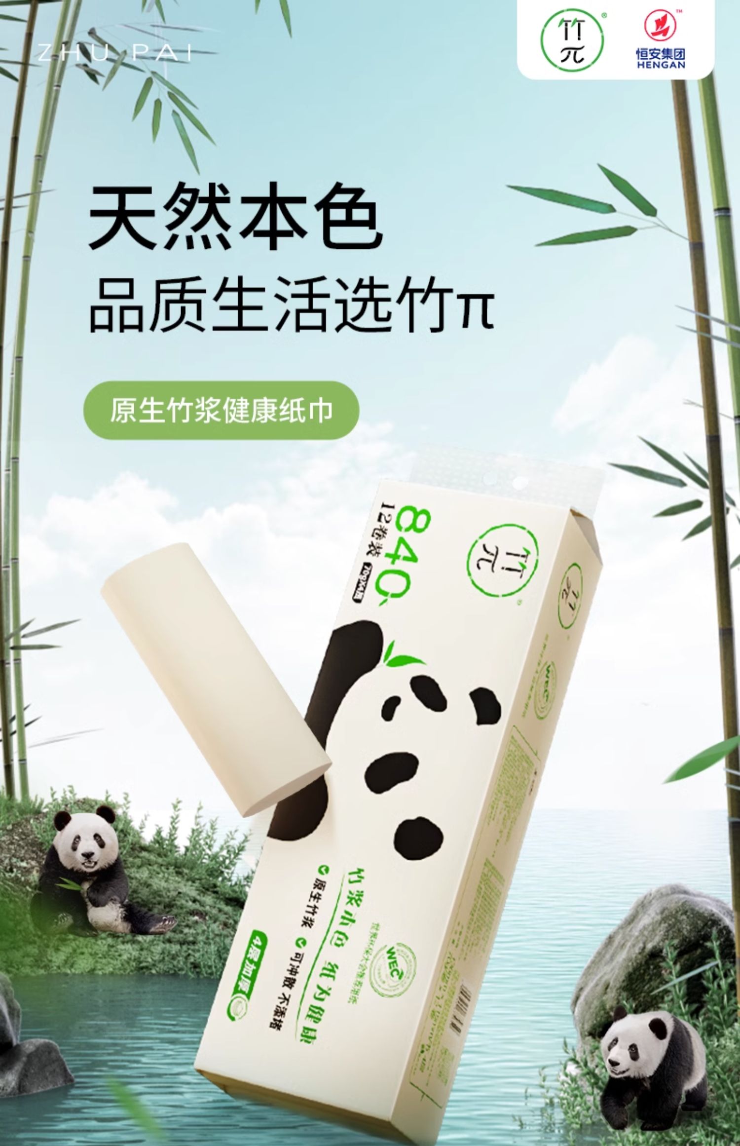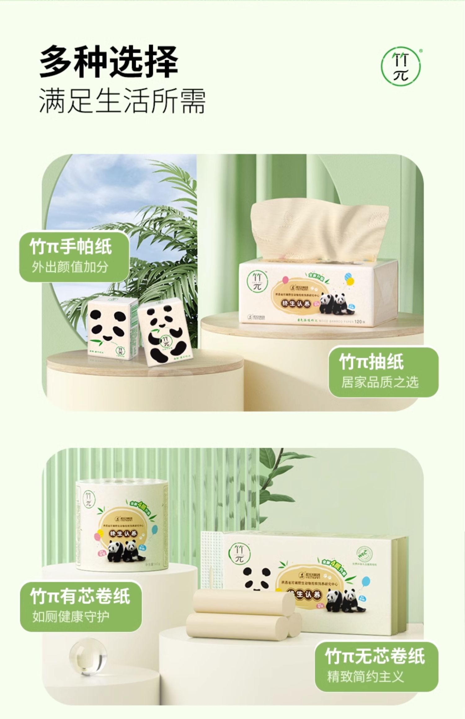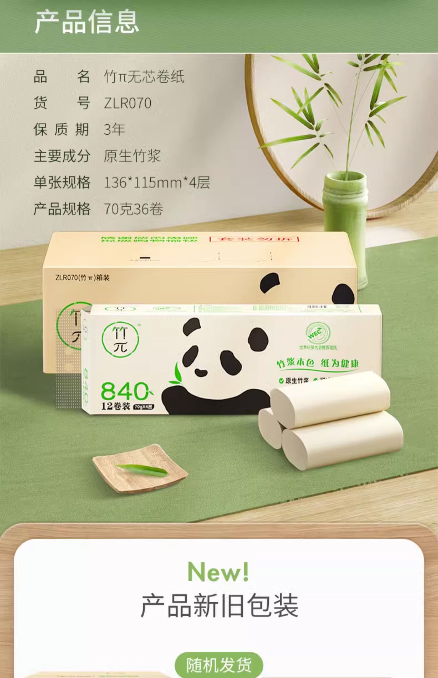 商品介绍:【心相印竹π】竹π无芯卷纸整箱实惠装36卷