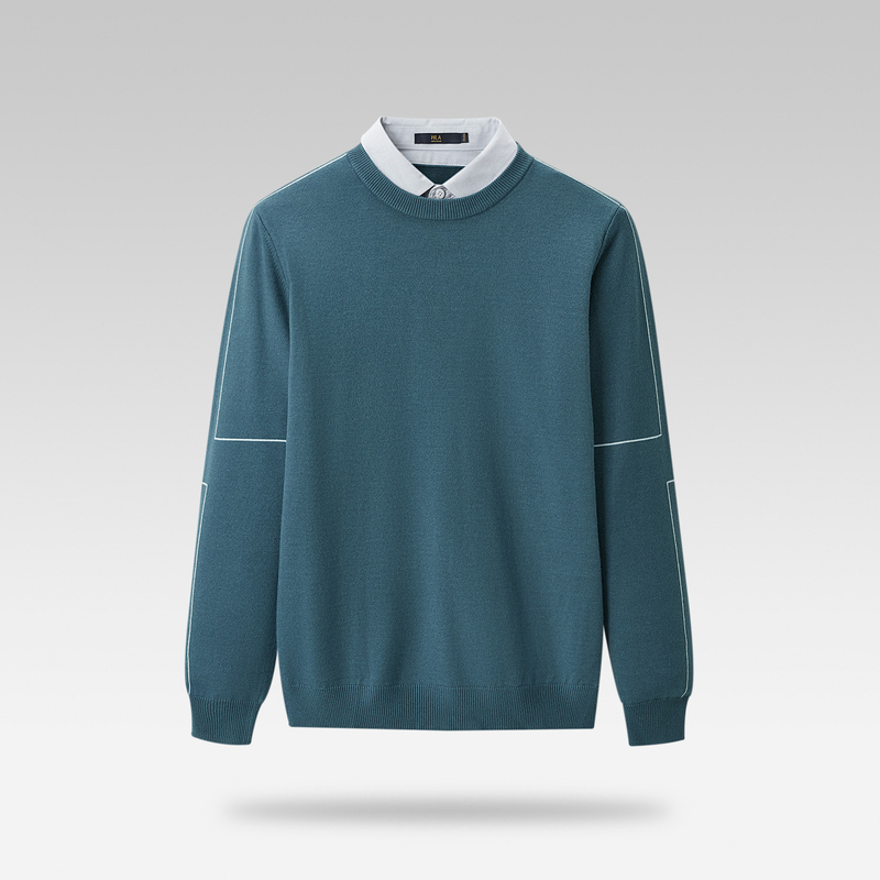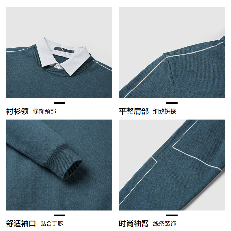商品名称:【奥莱】HLA/海澜之家衬衫领假两件针织衫秋冬休闲舒适打底衫男