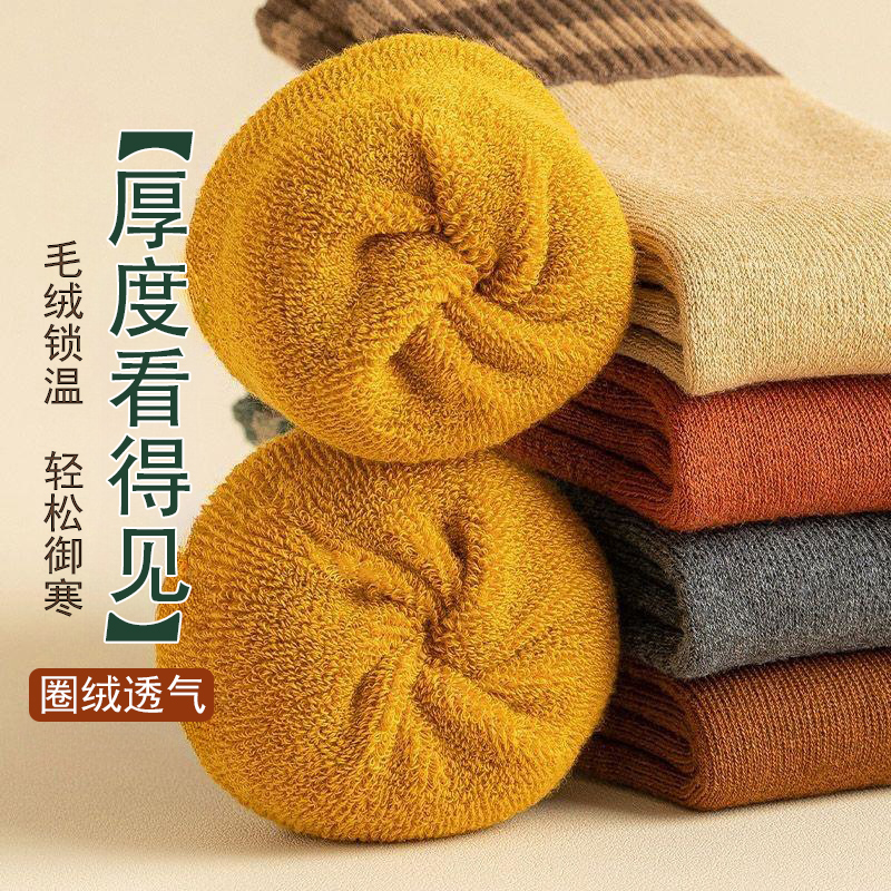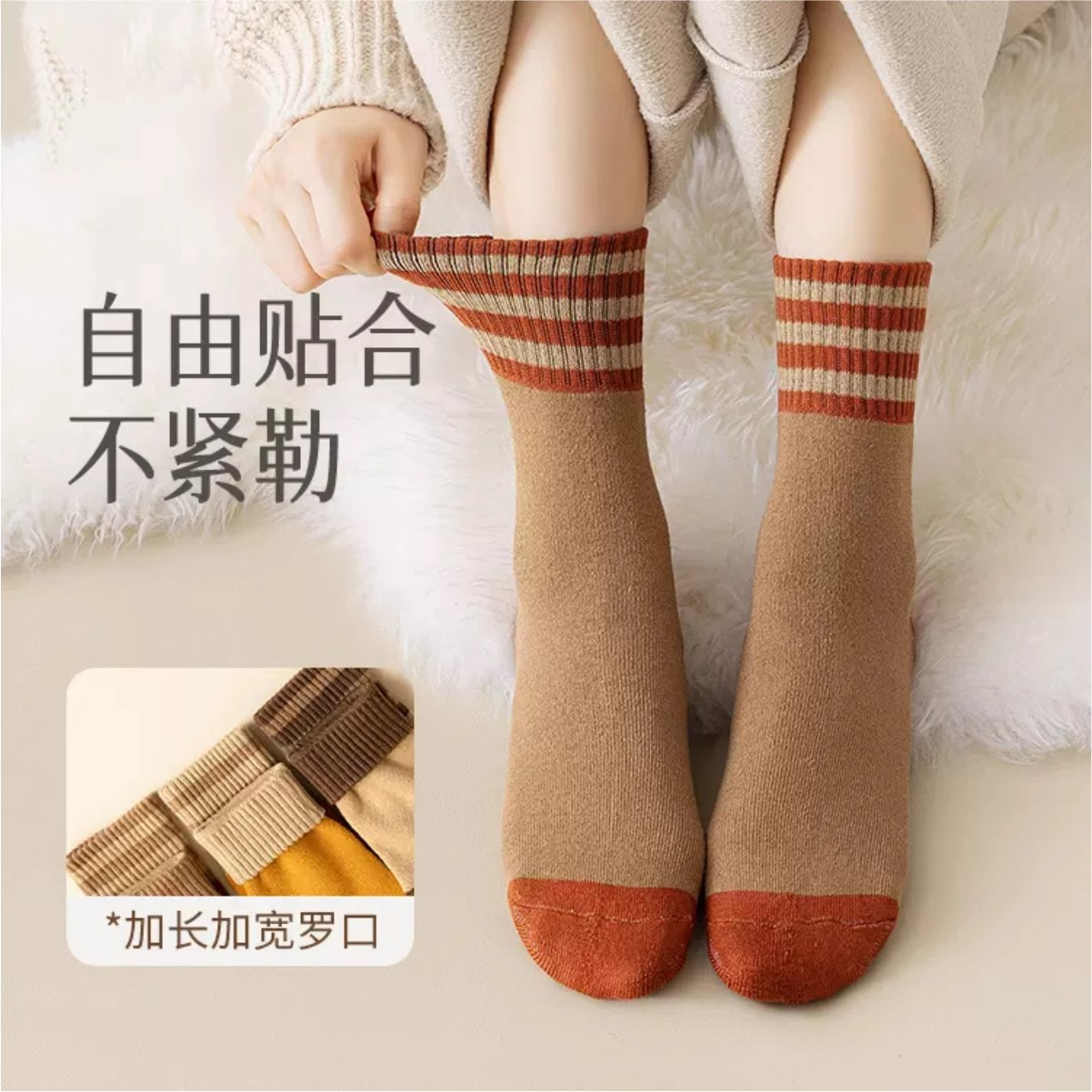 商品名称:2024秋冬季女士中筒袜子加绒加厚毛巾底抗寒保暖条纹厚毛圈雪地袜