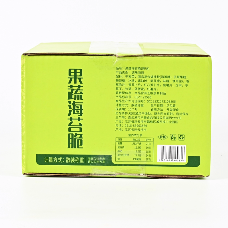 商品名称:果蔬海苔脆7g*9包零添加非油炸海苔饼干海苔片芝麻夹心坚果海苔卷