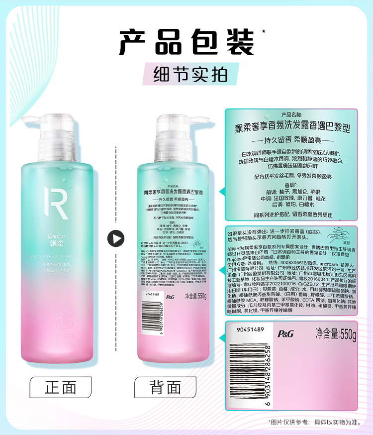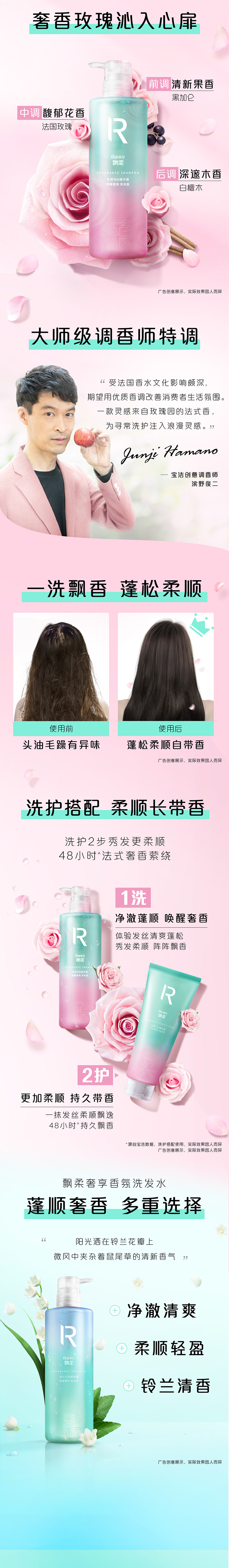 商品介绍:飘柔无硅油法式小香瓶洗发水550g*2瓶