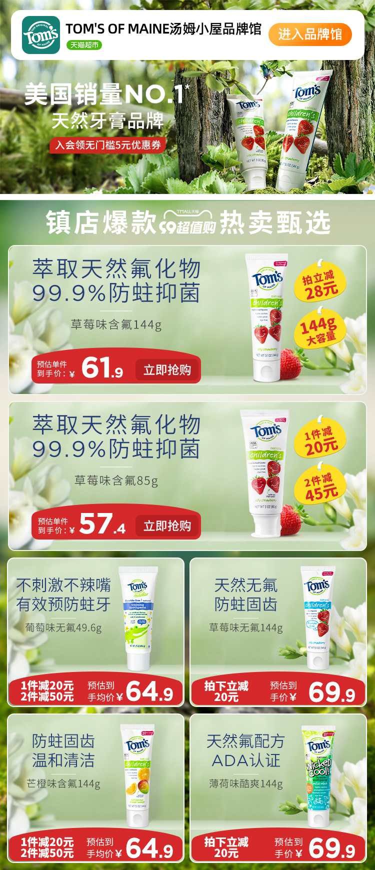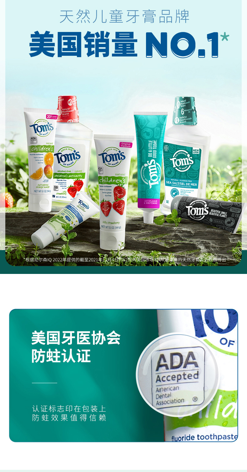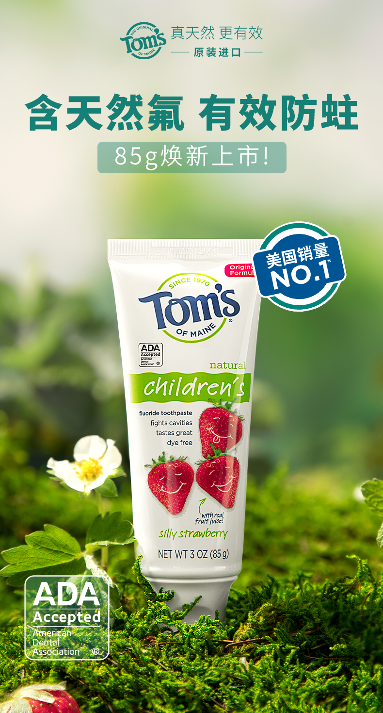 商品名称:Toms汤姆小屋儿童牙膏防蛀含氟草莓85g宝宝2-6-12岁天然不辣口