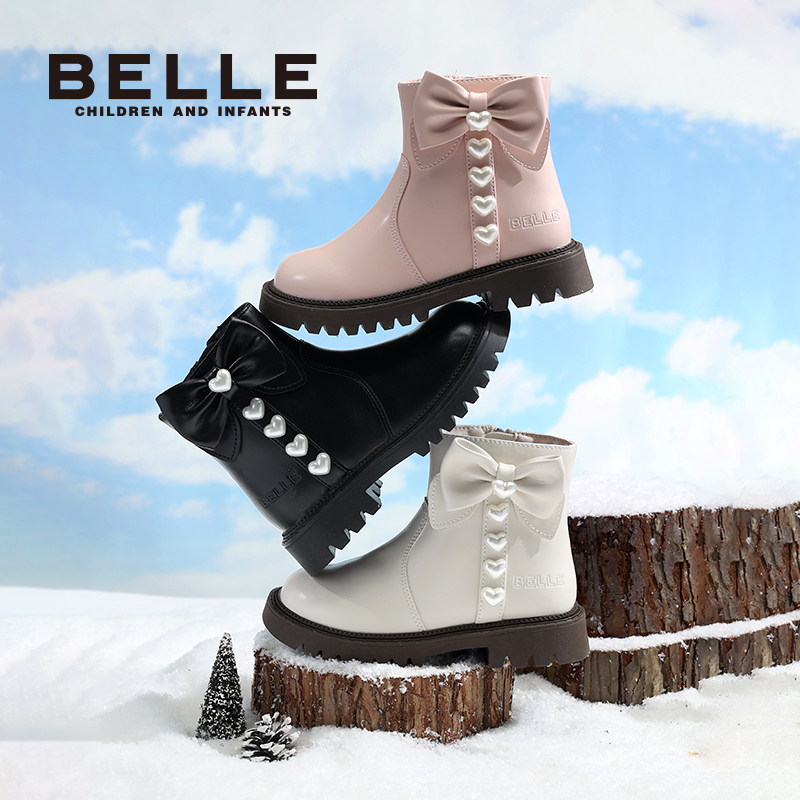 商品介绍:百丽女童加绒靴子冬季新款短靴小女孩公主靴