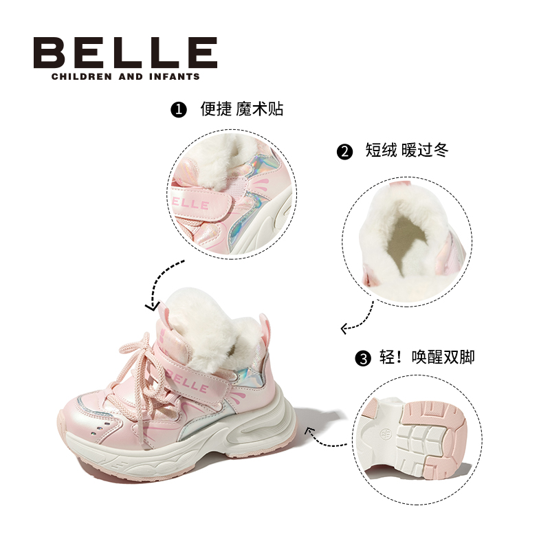 商品介绍:百丽棉鞋女童加绒运动鞋冬季新款保暖老爹鞋