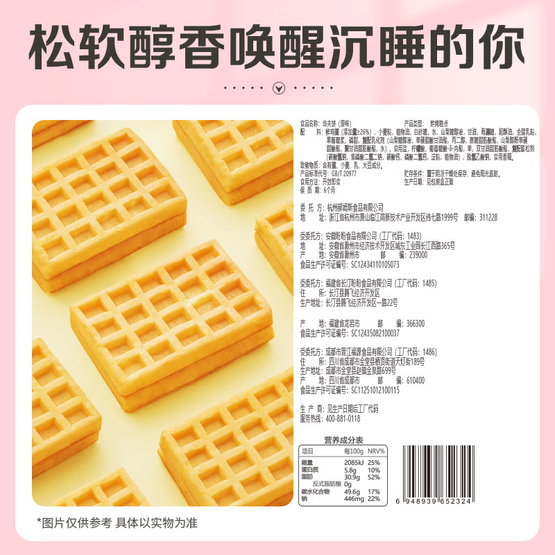 商品介绍:【百补直播19.9】百草味华夫饼1kg