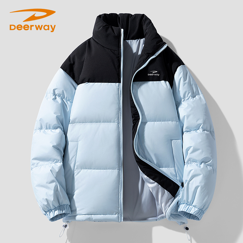 商品名称:德尔惠拼色立领羽绒服情侣款冬季新款保暖御寒多款上衣外套男