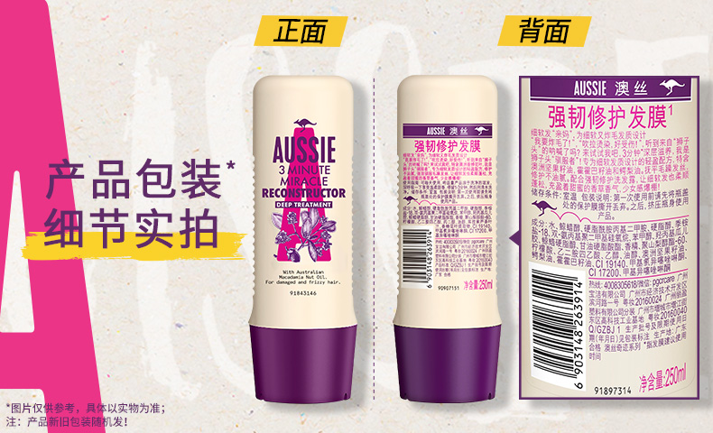 商品名称:Aussie澳丝袋鼠修护洗头水护发素改善干枯受损毛躁/柔顺发膜