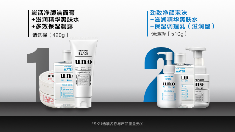 商品介绍:UNO吾诺男士洁面水乳套装420g