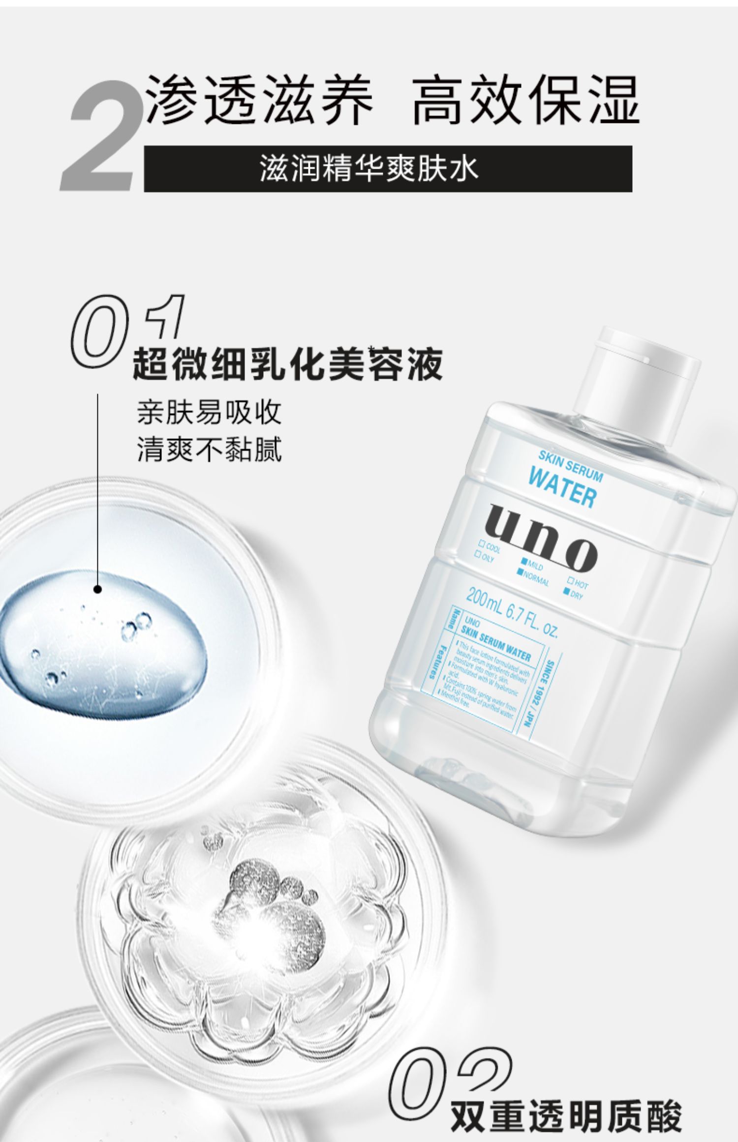 商品名称:UNO吾诺 男士洁面水乳套装脸部护肤面霜保湿补水爽肤水润肤三件套