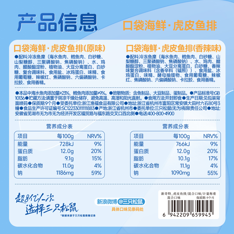 商品介绍:三只松鼠虎皮鱼排小零食350g约42包