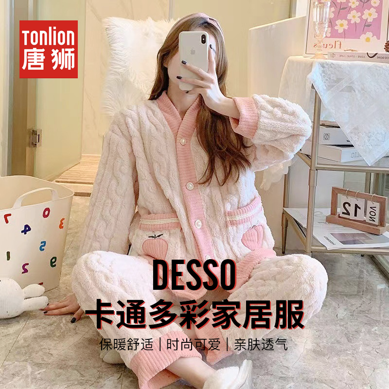 商品名称:唐狮集团DESSO珊瑚绒家居服套装秋冬季可爱法兰绒睡衣加绒加厚女