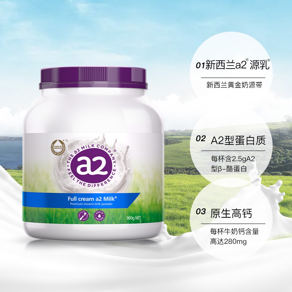 商品名称:a2澳洲进口紫吨吨成人高钙全脂奶粉A2蛋白全家共享900g*2罐