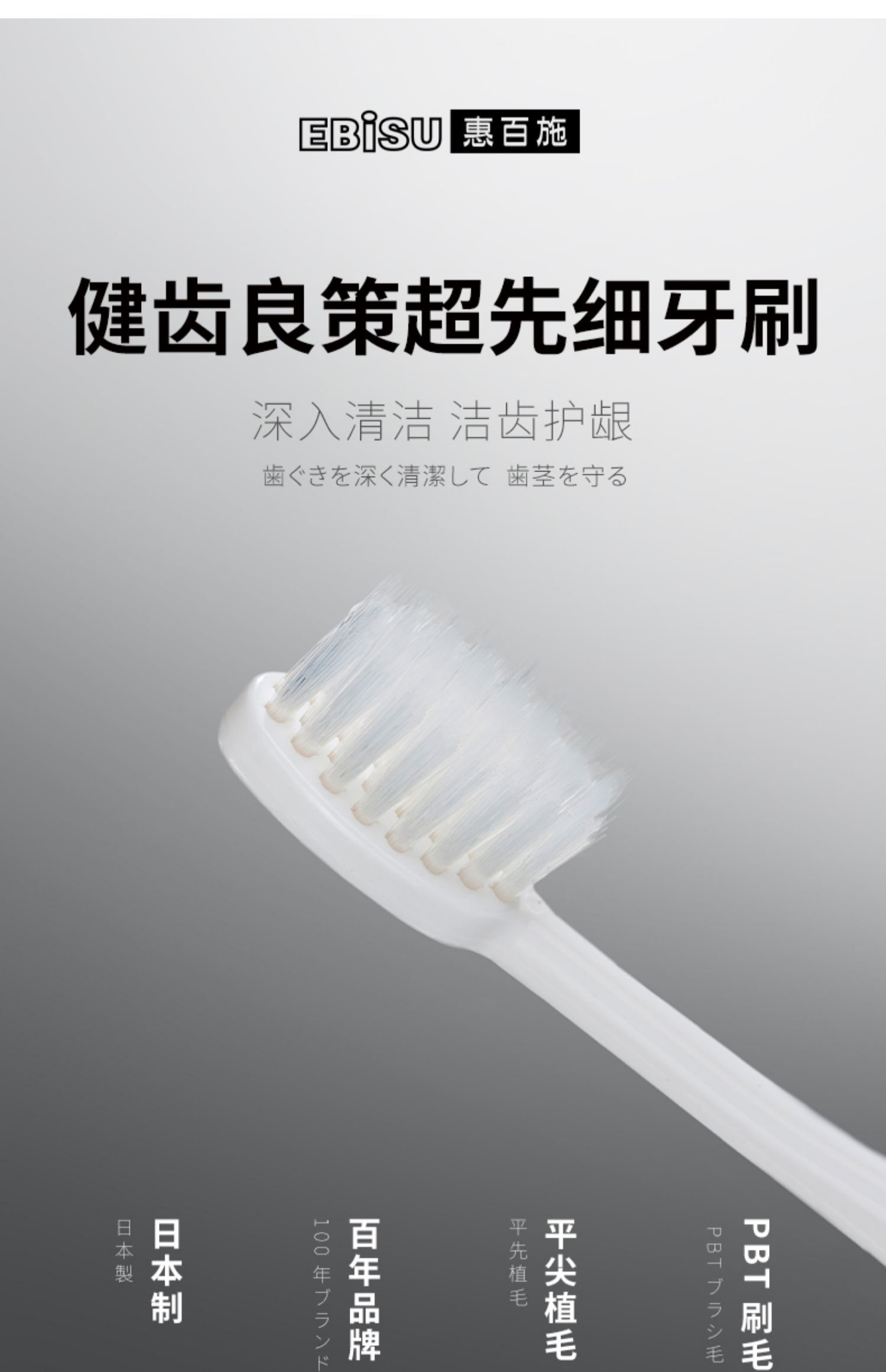 商品名称:惠百施/EBISU原装进口成人软毛护龈小头先细牙刷4支家庭装